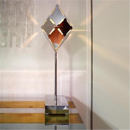 Gabriella Crespi<BR>table lamp<BR>Italy, c. 1970<BR>chrome-plated brass<BR>9.5 w x 9.5 d x 35 h inches<BR>Signed twice with impressed signature to base and shade: [Gabriella Crespi Brev.].<BR><BR>Condition of the item is not included in this description. Condition reports are available from Wright upon request. Wright strongly recommends that you review a condition report for each item on which you plan to bid.