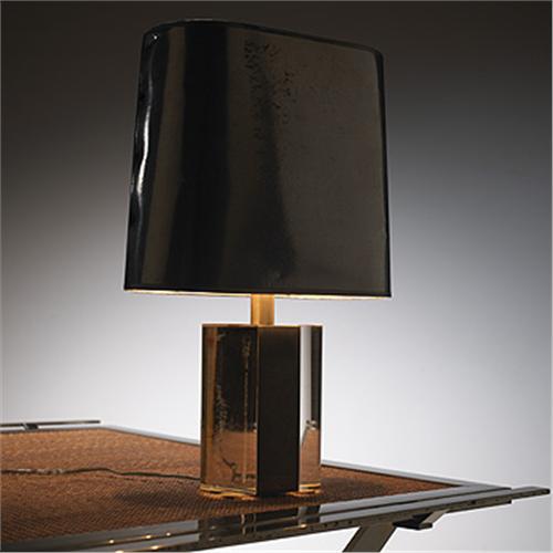 Gabriella Crespi table lamp Italy, c. 1970 acrylic, brass, metalicized paper 9.25"w x 5"d x 15.5"h