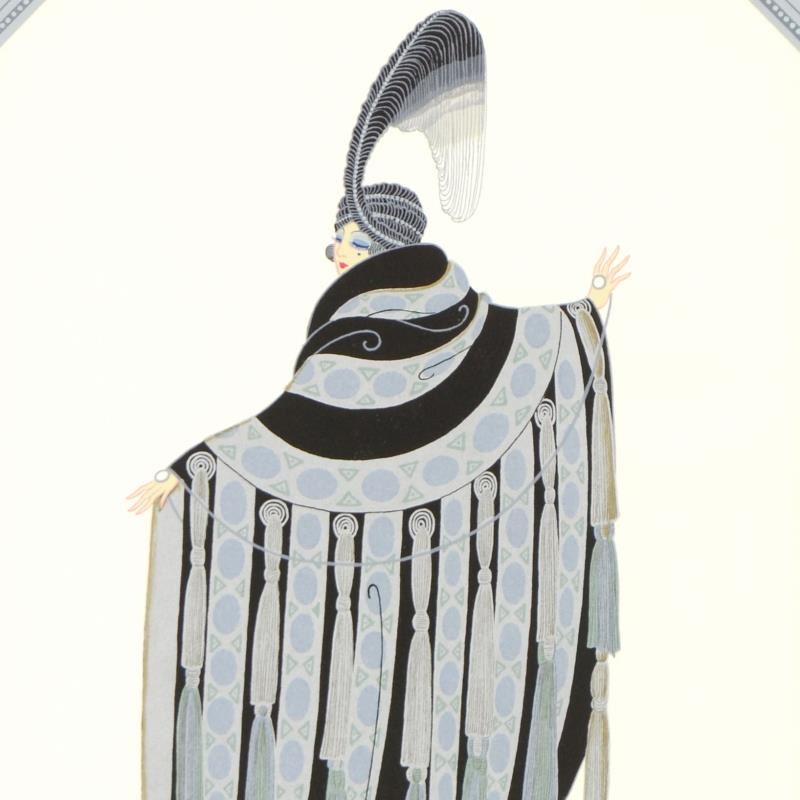 "Gaby Deslys" is a limited edition serigraph on paper by Erte (1892-1990), numbered and hand signed by the artist. Includes Certificate of Authenticity. Measures approx. 20" x 26" (with border), 12" x 17.5" (image).