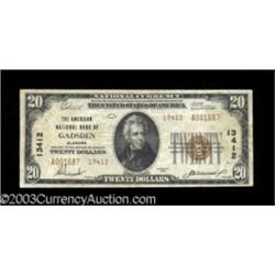 <TABLE cellSpacing=0 cellPadding=0 width="100%" bgColor=#000000 border=0><TBODY> <TR><TD width="100%"><TABLE cellSpacing=1 cellPadding=3 width="100%" border=0><TBODY><TR><TD width="100%" bgColor=#79735c><FONT face=arial color=#ffffff size=3><B>Description</B> </FONT></TD></TR><TR><TD width="100%" bgColor=#ffffff><FONT face=arial size=2><B>Gadsden, AL</B></I> - $20 1929 Ty. 2 <B>The American NB</B></I> Ch. # 13412<BR>A nice evenly circulated <B>Fine-Very Fine</B></I> example from this less often seen Gadsden bank. (175-325 ) </FONT></TD></TR></TBODY></TABLE></TD></TR></TBODY></TABLE><BR><TABLE cellSpacing=0 cellPadding=0 width="100%" bgColor=#000000 border=0><TBODY><TR> Important notice: Heritage usually auctions material at the rate of 200-250 lots per hour. On some occasions eBay Live bid software or the Internet may not be able to keep up with the pace of the auction. We recommend placing a realistic absentee bid now as insurance to avoid disappointment. Occasionally the auctioneer may eliminate or reject an eBay Live bid, and the auctioneer may also reopen a lot after the close of the eBay live bidding (usually because we missed an audience bid), and may reject your bid even if it shows you as the winning bidder. By bidding via eBay Live, you agree that Heritage may award the lot to another bidder at its sole discretion under the circumstances described above or any other reasonable circumstances. Also please note that all Heritage lots purchased through eBay Live carry a 20% Buyer's Premium. Please make sure you read the Terms and Conditions before you bid.</TR></TBODY></TABLE>