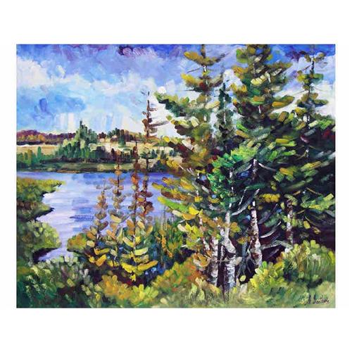 Canadian [b. 1936] PRESQUE DANS L'EAU oil on board 30 x 36 in. (76.2 x 91.4 cm) signed & titled