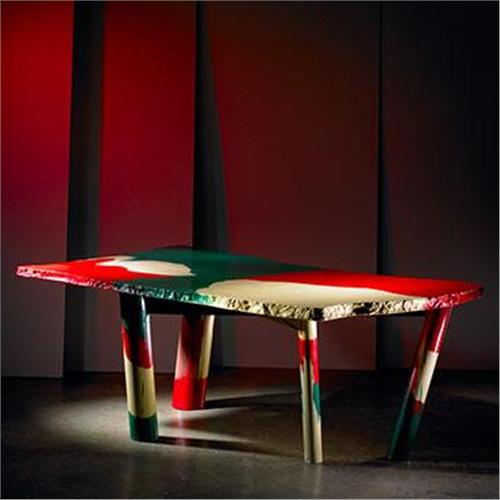 Gaetano Pesce<BR>Sansone table<BR>Cassina<BR>Italy, 1980<BR>cast resin with lacquer coating<BR>77 w x 45.5 d x 28.5 h inches<BR>This early production example features a solid resin tabletop. Subsequent examples have tabletops of poured resin over an armature, diminishing the table's weight.<BR>Provenance: <BR>Marc-Andre Hubin, Paris | Private collection, Paris<BR>Literature: <BR><i>Gaetano Pesce: Architecture Design Art</i>, Vanlaethem, pg. 77 <i>Gaetano Pesce: Cinq Techniques Pour Le Verre/Experience Au C.I.R.V.A.</i> pg. 203<BR><BR>Condition of the item is not included in this description. Condition reports are available from Wright upon request. Wright strongly recommends that you review a condition report for each item on which you plan to bid.