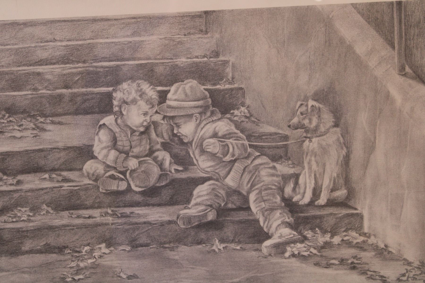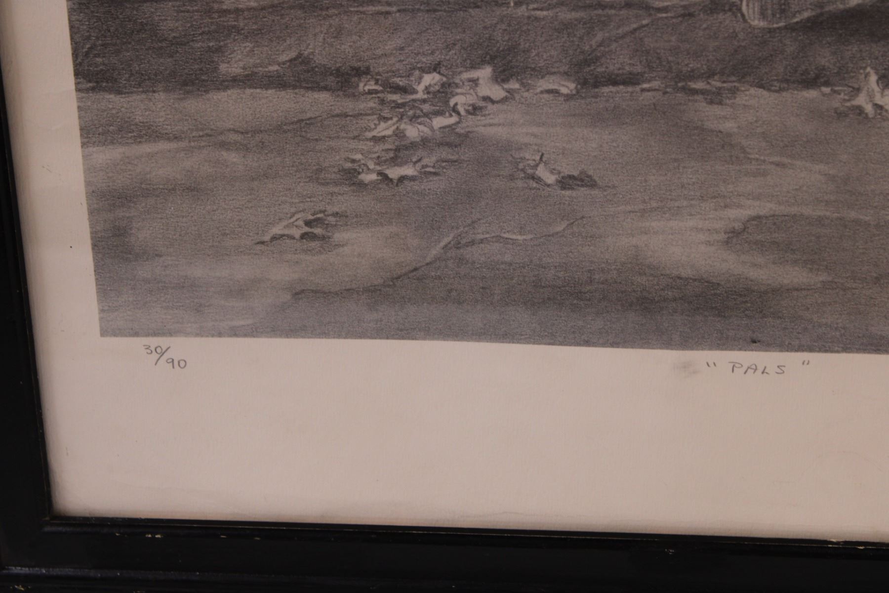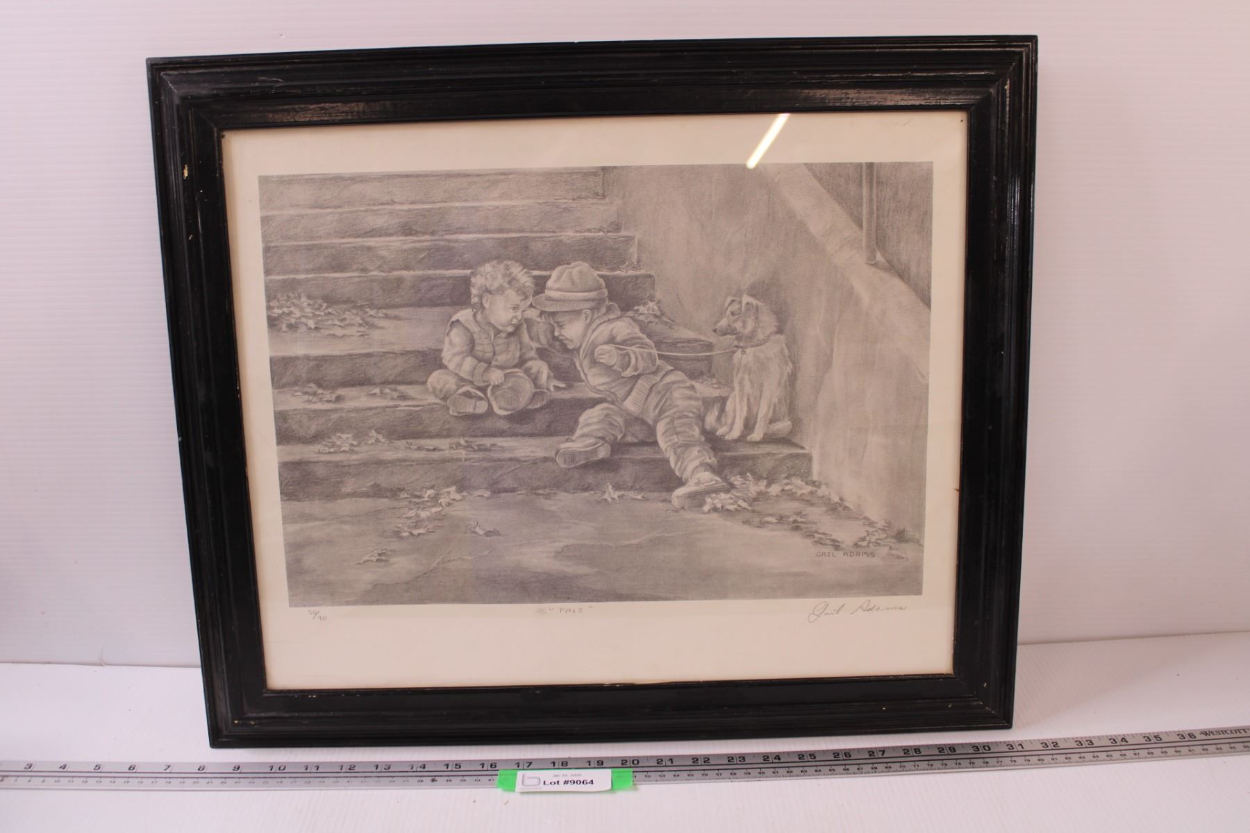 Gail Adams Pencil Drawing "Pals" Art Print 30/90 in Frame - 24" x 20"