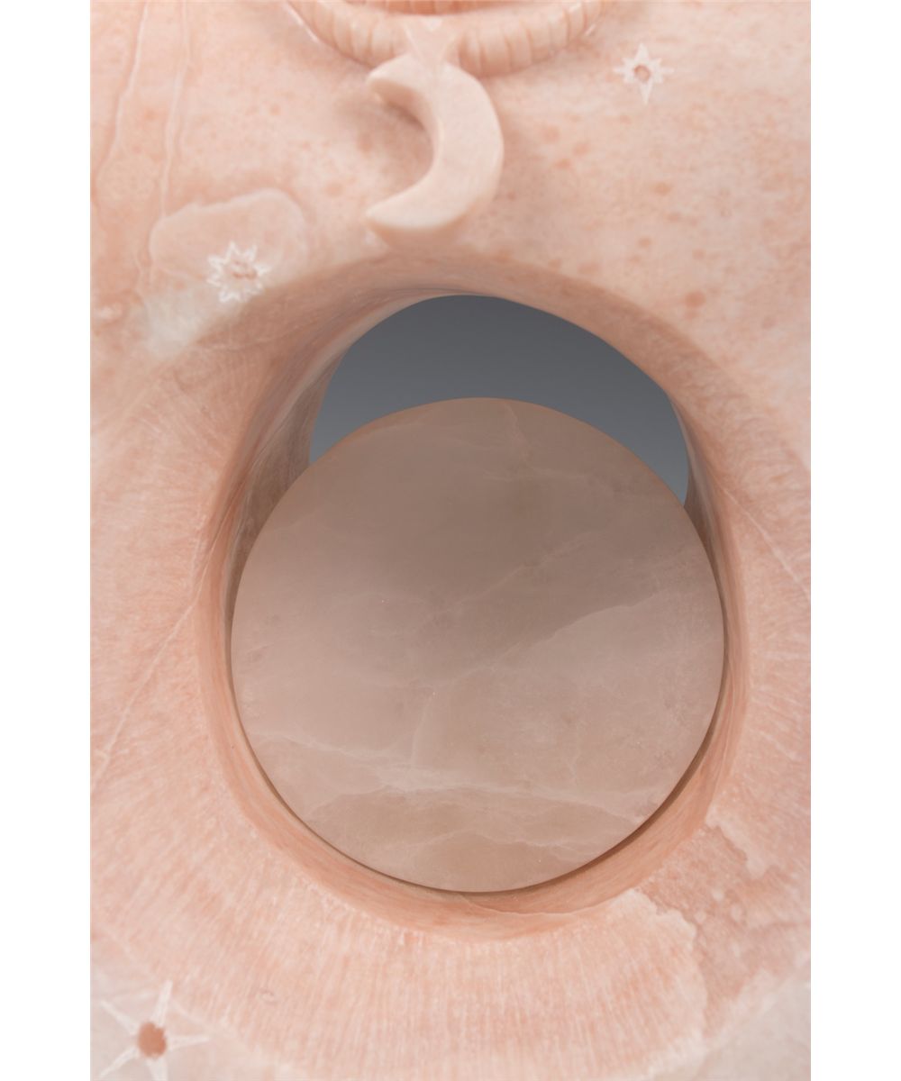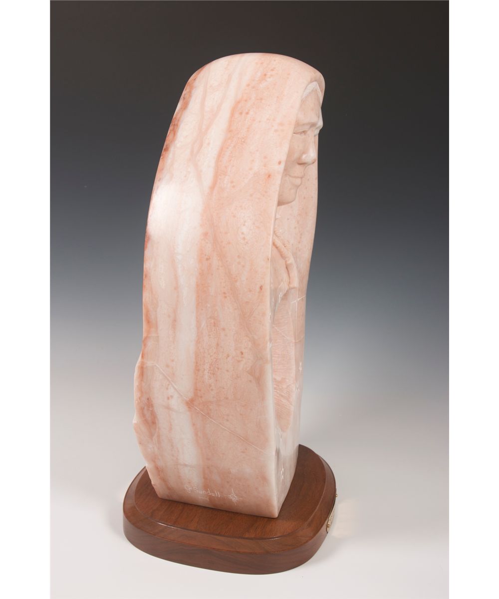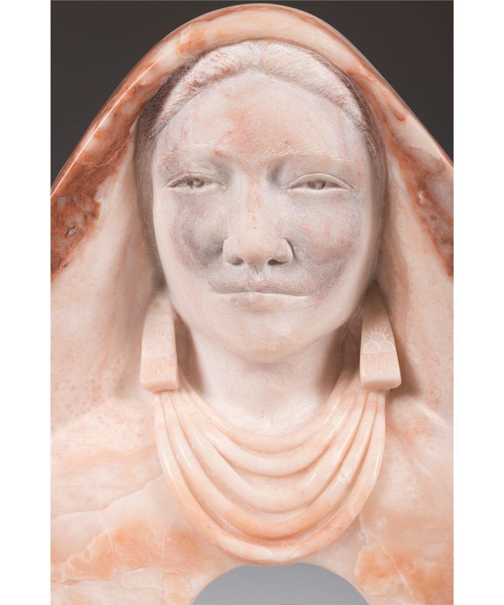 Gail Jones Sundell (20th/21st centuries). Mother Earth and Sister Moon. 19.5" x 12" x 6" double-faced alabaster. Inscribed: G Sundell 2005 [cypher]. Provenance: Estate of Ken Holm, Denver, CO.