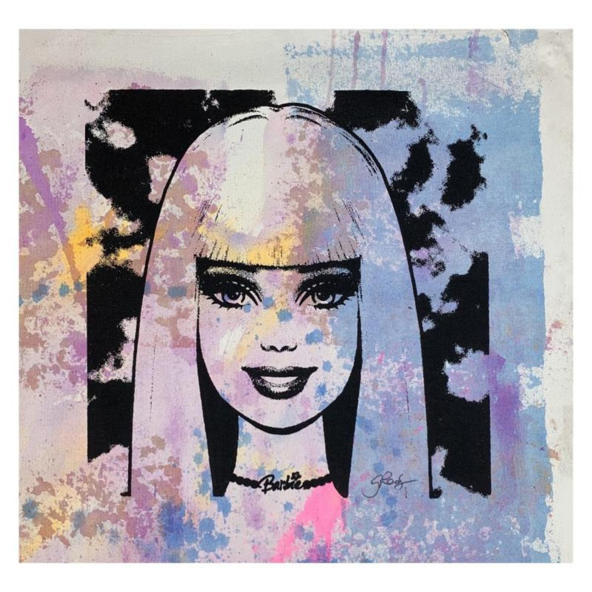 "Barbie" is an original hand pulled silkscreen and acrylic painting on canvas by Gail Rodgers. Hand signed by the artist, the piece comes with a letter of authenticity. This piece is meant to be gallery wrapped and measure approximately 23" x 23" and image dimensions (after stretching) 16" x 16" (image). Reference #: 244541