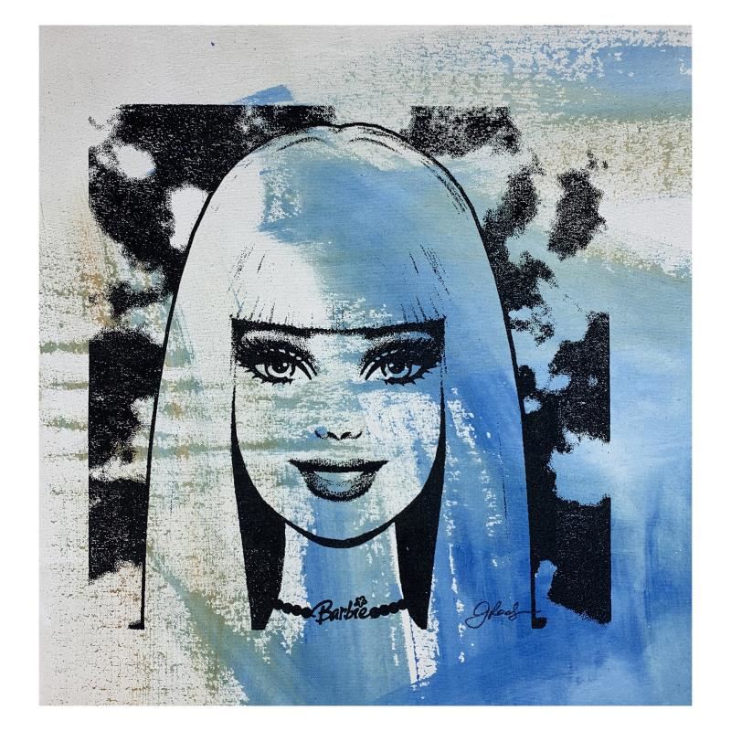 "Barbie" is an original hand pulled silkscreen and acrylic painting on canvas by Gail Rodgers. Hand signed by the artist, the piece comes with a letter of authenticity. This piece is meant to be gallery wrapped and measure approximately 23" x 23" and image dimensions (after stretching) 16" x 16" (image).