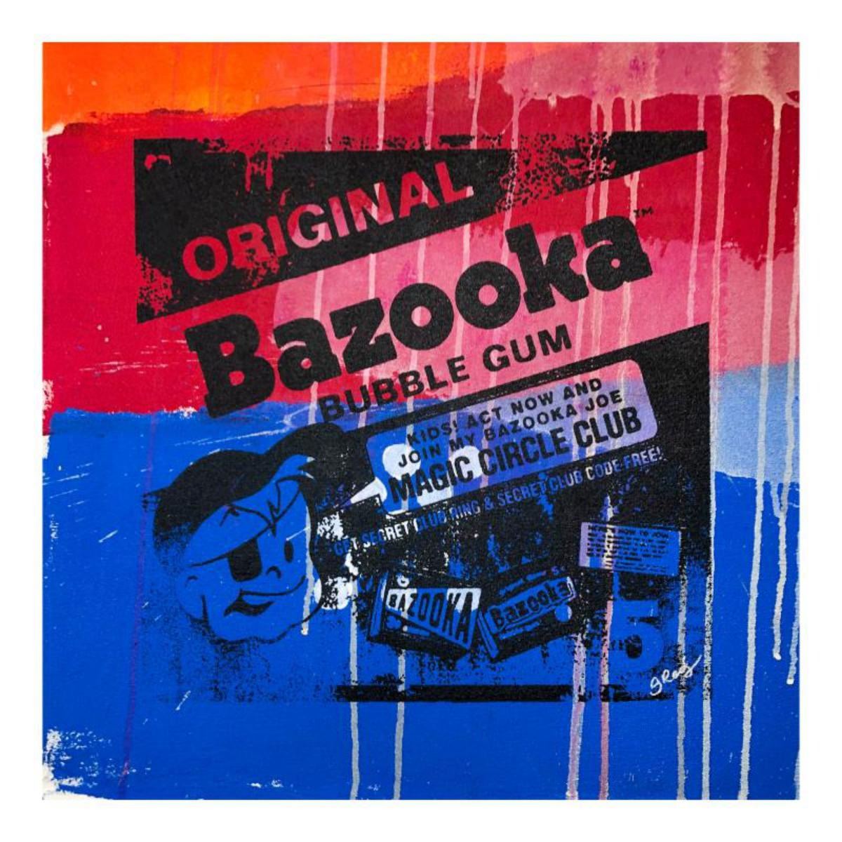 "Bazooka Joe" is an original hand pulled silkscreen and acrylic painting on canvas by Gail Rodgers. Hand signed by the artist, the piece comes with a letter of authenticity. This piece is meant to be gallery wrapped and measure approximately 23" x 23" and image dimensions (after stretching) 16" x 16" (image). Reference #: 244435