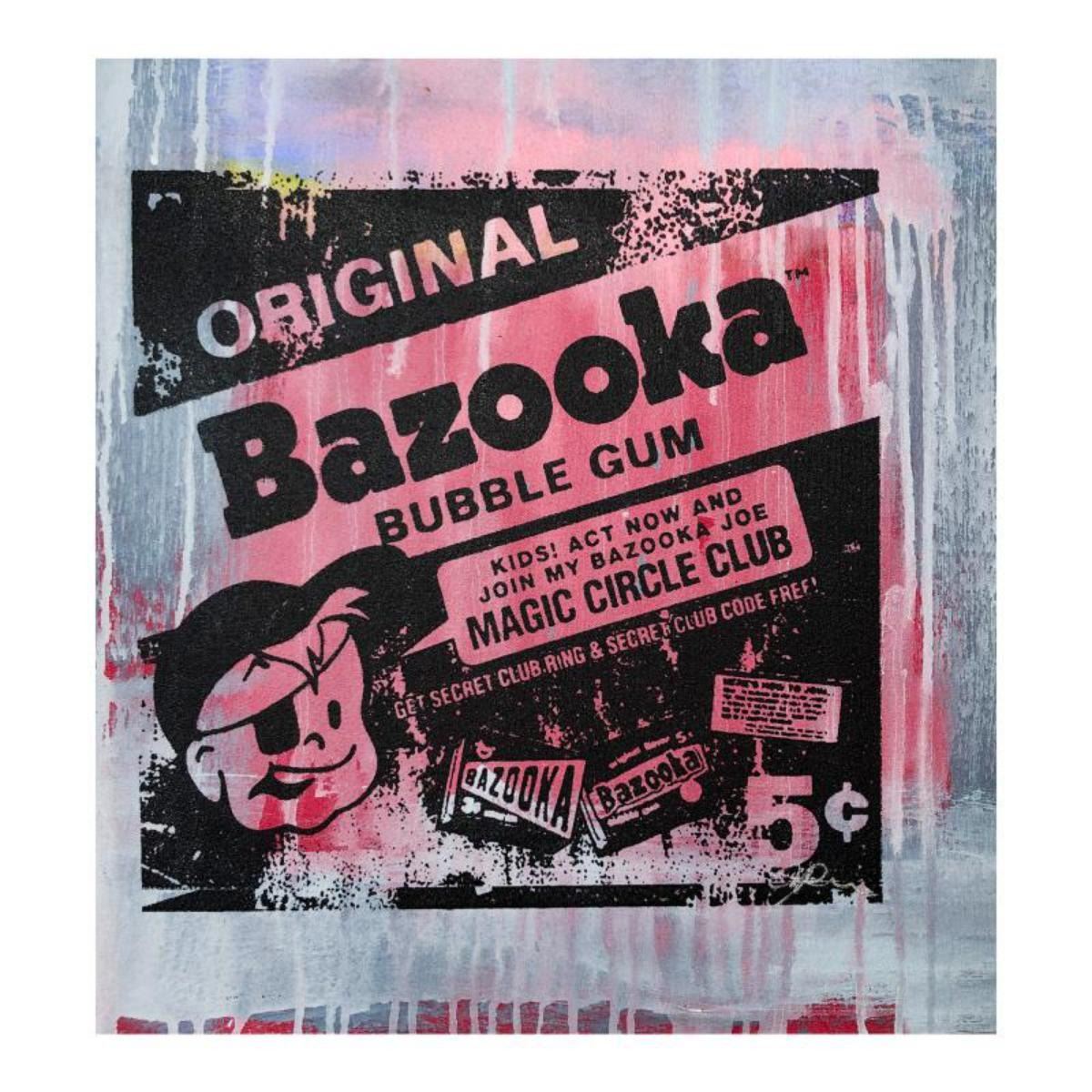 "Bazooka Joe" is an original hand pulled silkscreen and acrylic painting on canvas by Gail Rodgers. Hand signed by the artist, the piece comes with a letter of authenticity. This piece is meant to be gallery wrapped and measure approximately 23" x 23" and image dimensions (after stretching) 16" x 16" (image). Reference #: 244434