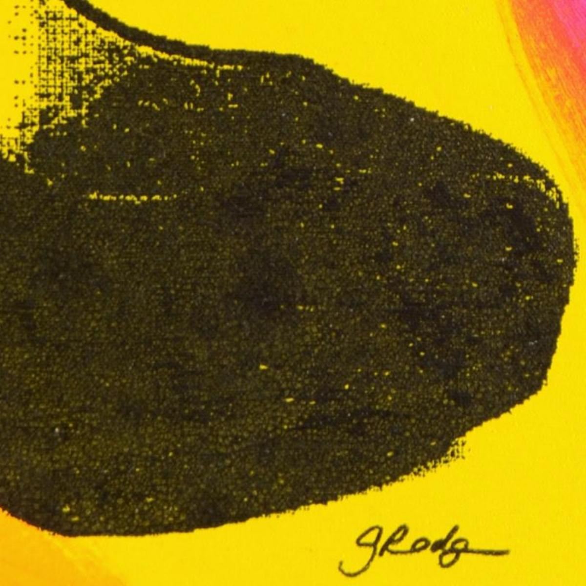 "Heels" is a one-of-a-kind hand-pulled silkscreen and acrylic painting on canvas, hand signed by Gail Rodgers. Includes Certificate of Authenticity. This piece is meant to be gallery wrapped. Canvas dimensions measure approx. 23" x 23" and image dimensions (after stretching) 16" x 16" (image).