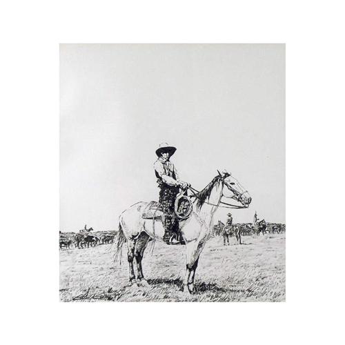 [Canadian 20th/21st century] RANGE BOSS; 1983 Pen and ink on paper 18 x 16 in. Signed, titled & dated.