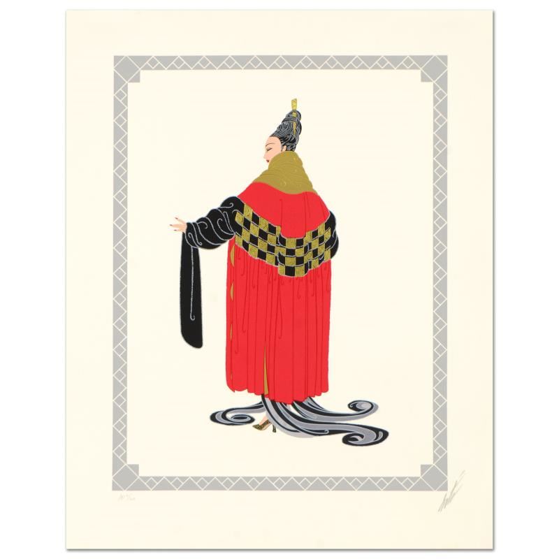 "Gala Performance" is a limited edition serigraph on paper by Erte (1892-1990), numbered and hand signed by the artist. Includes Certificate of Authenticity. Measures approx. 18" x 22.5" (border), 14" x 18" (image). Due to the age of this piece and the delicate nature of the paper it may have some slight imperfections.