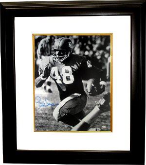 Gale Sayers was a two-time All-American football player at the University of Kansas. During his Jayhawk career, he rushed for 2,675 yards and gained 3,917 all-purpose yards. In 1963, he set an NCAA Division I record with a 99-yard run against Nebraska. In his senior year, he led the Jayhawks to a 15-14 upset victory over Oklahoma with a 96-yard kickoff return. Sayers is considered by many to have been the greatest open field runner in college football history. Gale Sayers has hand autographed this Kansas Jayhawks 16x20 Photo. GTSM hologram and Certificate of Authenticity from Athlon Sports
