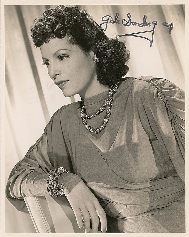 Pearl-finish 7.5 x 9.5 MGM publicity photo of Sondergaard in Dramatic School, signed in black felt tip. In fine condition.