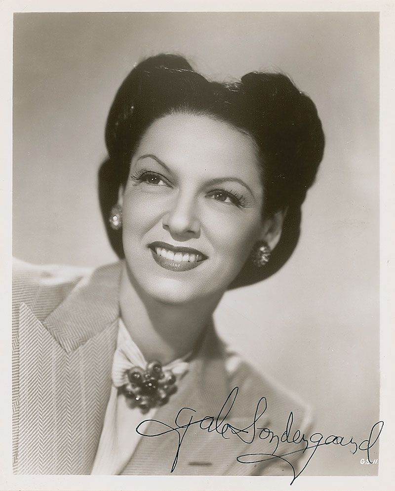 Glossy 8 x 10 photo of Sondergaard smiling, signed at the bottom in black felt tip. In fine condition, with light creases to the left corners.