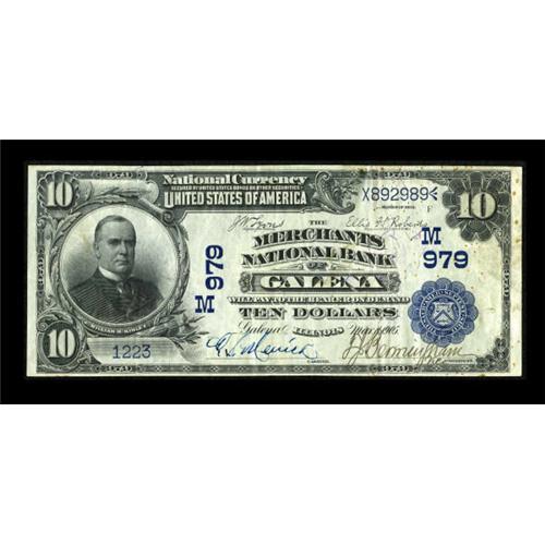 <B>Galena, IL</B></I> - $10 1902 Date Back Fr. 616 <B>The Merchants NB</B></I> Ch. # (M)979<BR> Beautiful dual color pen signatures grace the surface of this crisp <B>Very Fine </B></I>example that has several rust flyspecks. A scarcer type from the home town of Ulysses S. Grant, with this becoming only the second recorded for the type.<BR><BR><b>Shipping:</b> Coins & Currency (<a target="_blank" href="http://www.heritageauctions.com/common/shipping.php">view shipping information</a>)