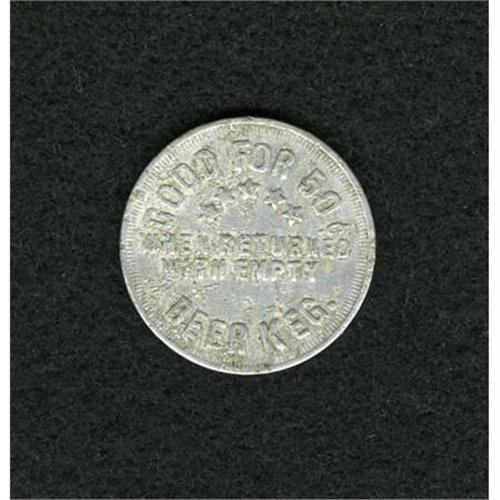 <B>Martin Blum's, Galena, Illinois, Unlisted Token.</B></I> Aluminum, 31.5 mm. Issued by Martin Blum's Franklin Street Brewery, in Galena, Ill. (Jo Daviess County). The token was good for 50 cent with return of an empty keg. The token is unlisted in the Vacketta catalog on Illinois tokens.<BR><BR><b>Shipping:</b> Coins & Currency (<a target="_blank" href="http://www.heritageauctions.com/common/shipping.php">view shipping information</a>)