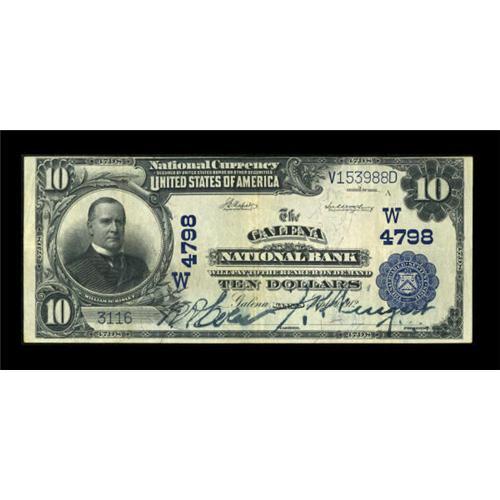 <B>Galena, KS</B></I> - $10 1902 Plain Back Fr. 628 <B>The Galena NB</B></I> Ch. # (W)4798<BR> Wonderful stamped signatures are seen on this Cherokee County issue which is a bit tight across the top.<B> Very Fine</B></I>. <BR><BR><b>Shipping:</b> Coins & Currency (<a target="_blank" href="http://www.heritageauctions.com/common/shipping.php">view shipping information</a>)