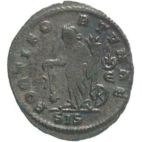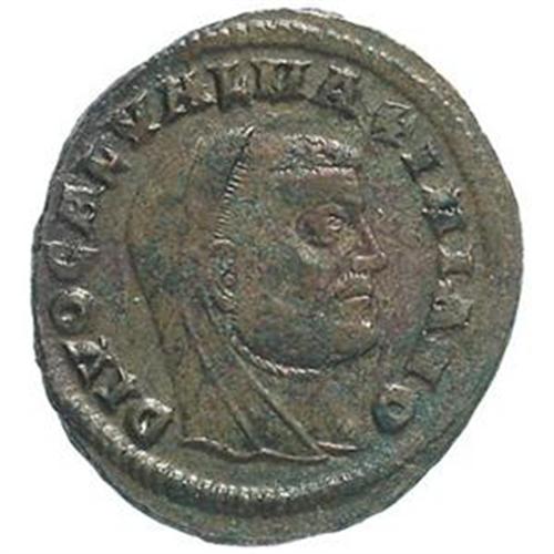 Roman Empire Coins. Galerius (305-311). Follis, Siscia. D/ DIVO GAL VAL MAXIMIANO. Testa velata a destra. R/ FORTI FORTVNAE. La Fortuna, stante a sinistra, tiene timone su globo e cornucopia. A destra, ai suoi piedi, una ruota. Nel campo, stella e crescente su E. In esergo: SIS. RIC 226. gr. 4.84 R. AE. Debolezza di conio al R/, altrimenti qSPL/BB+.