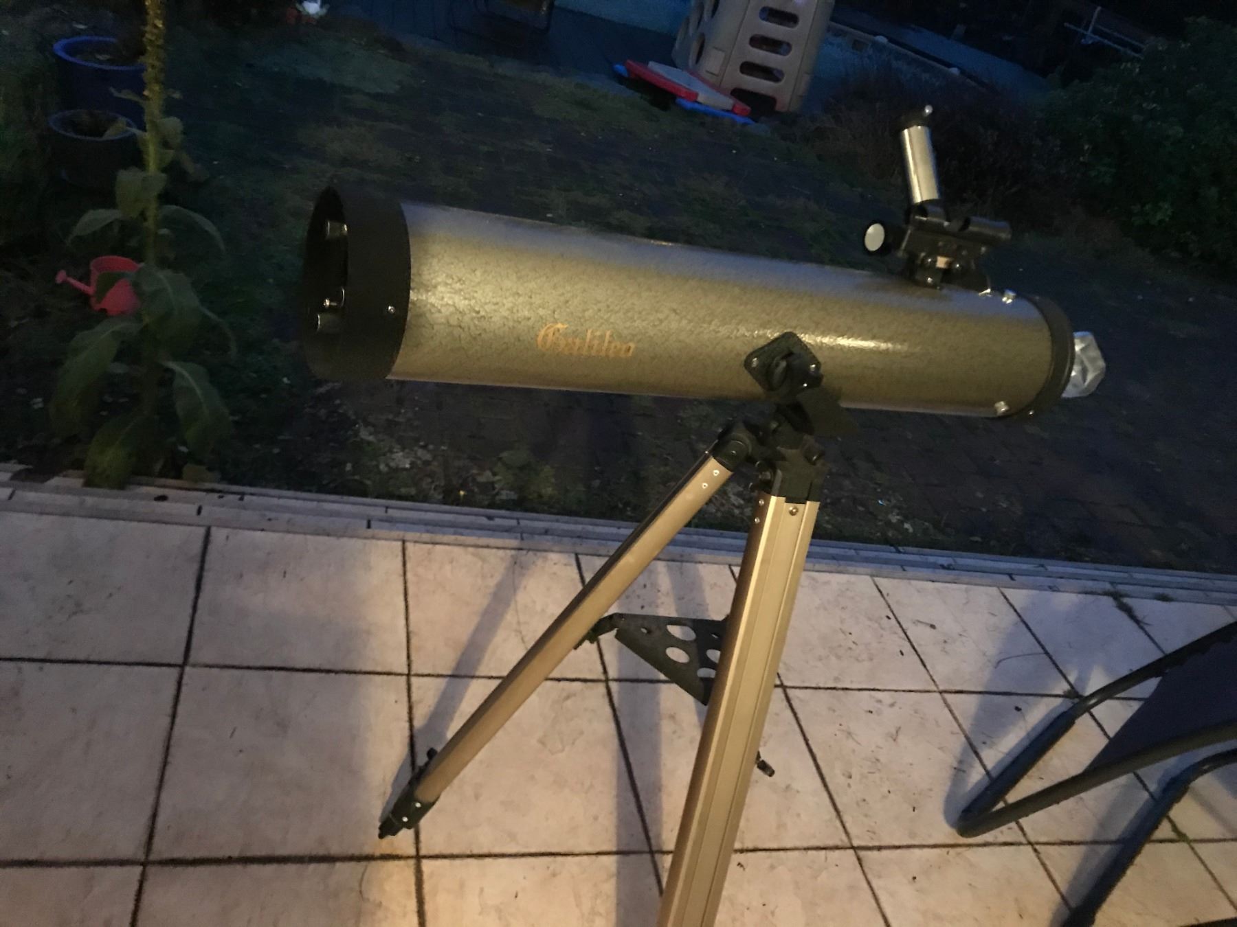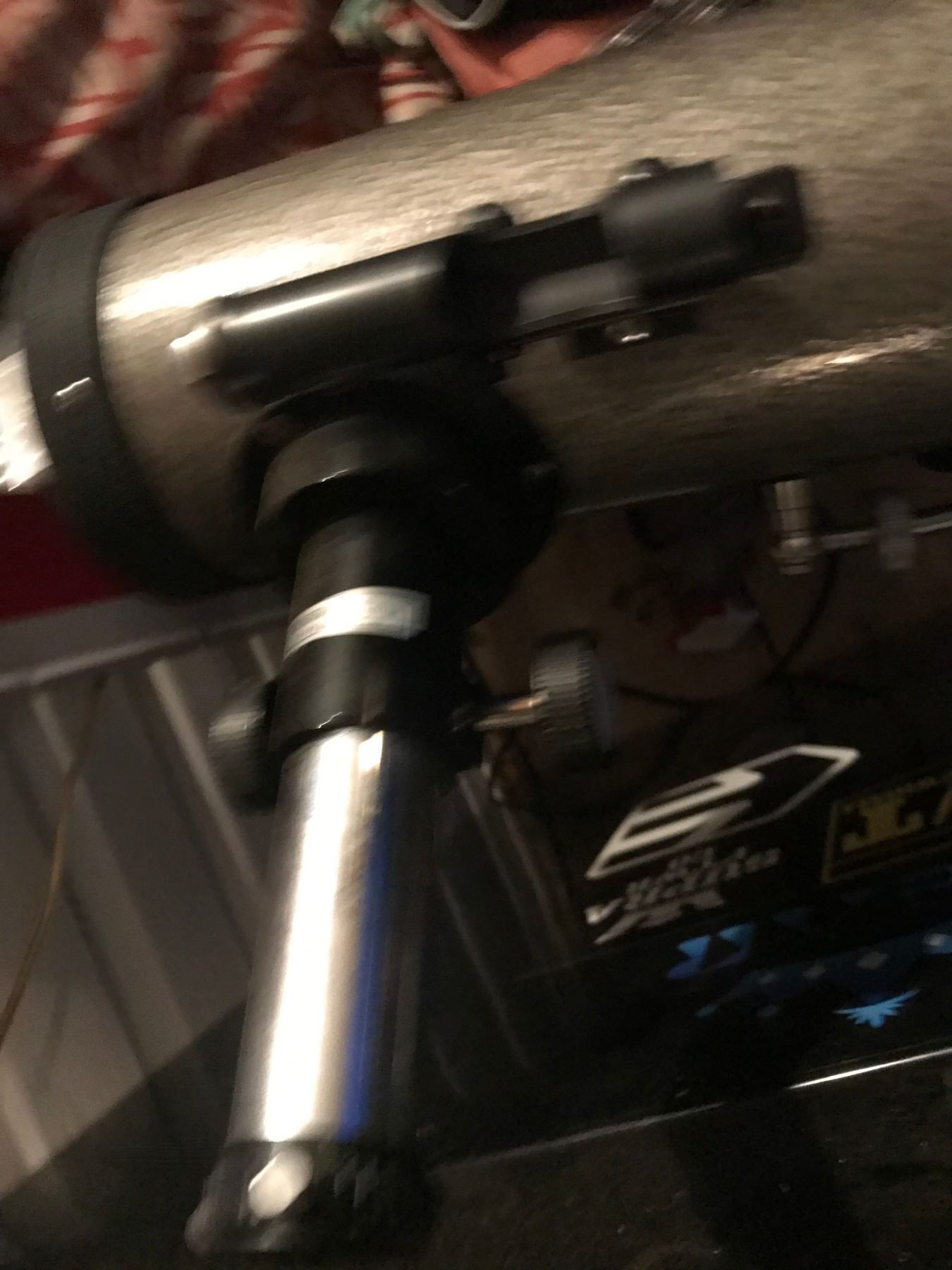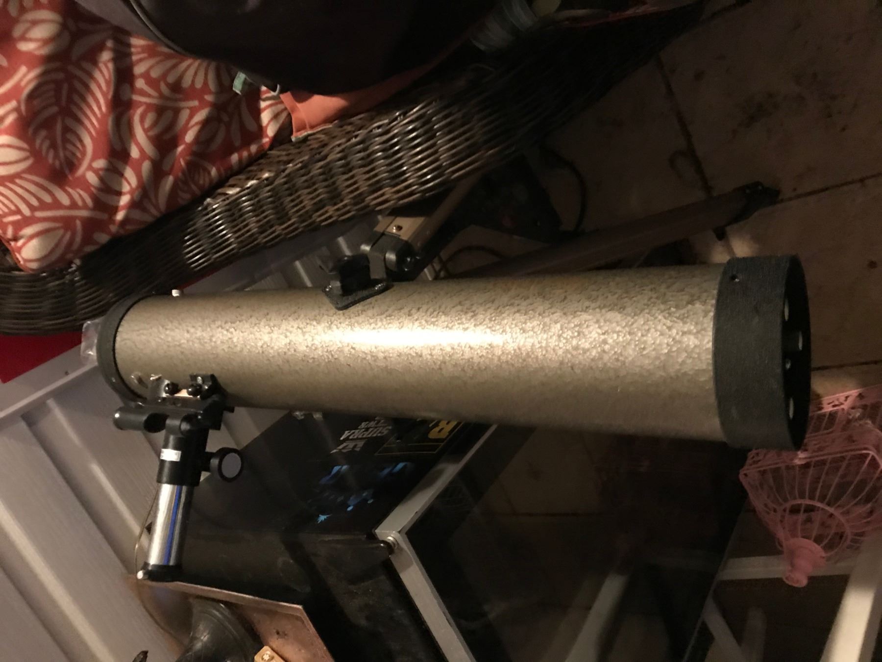 Telescope 29 inch sits on extending tripod. Pickup at 10am