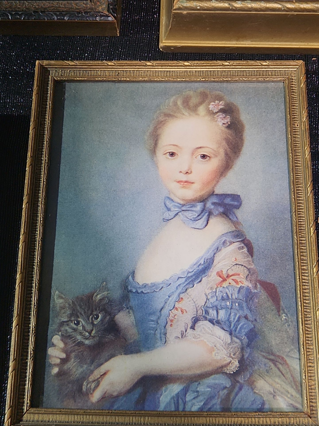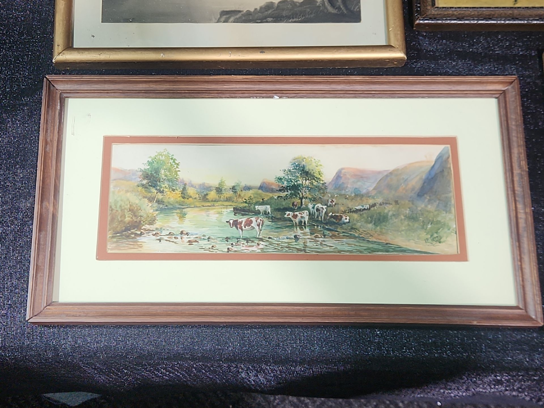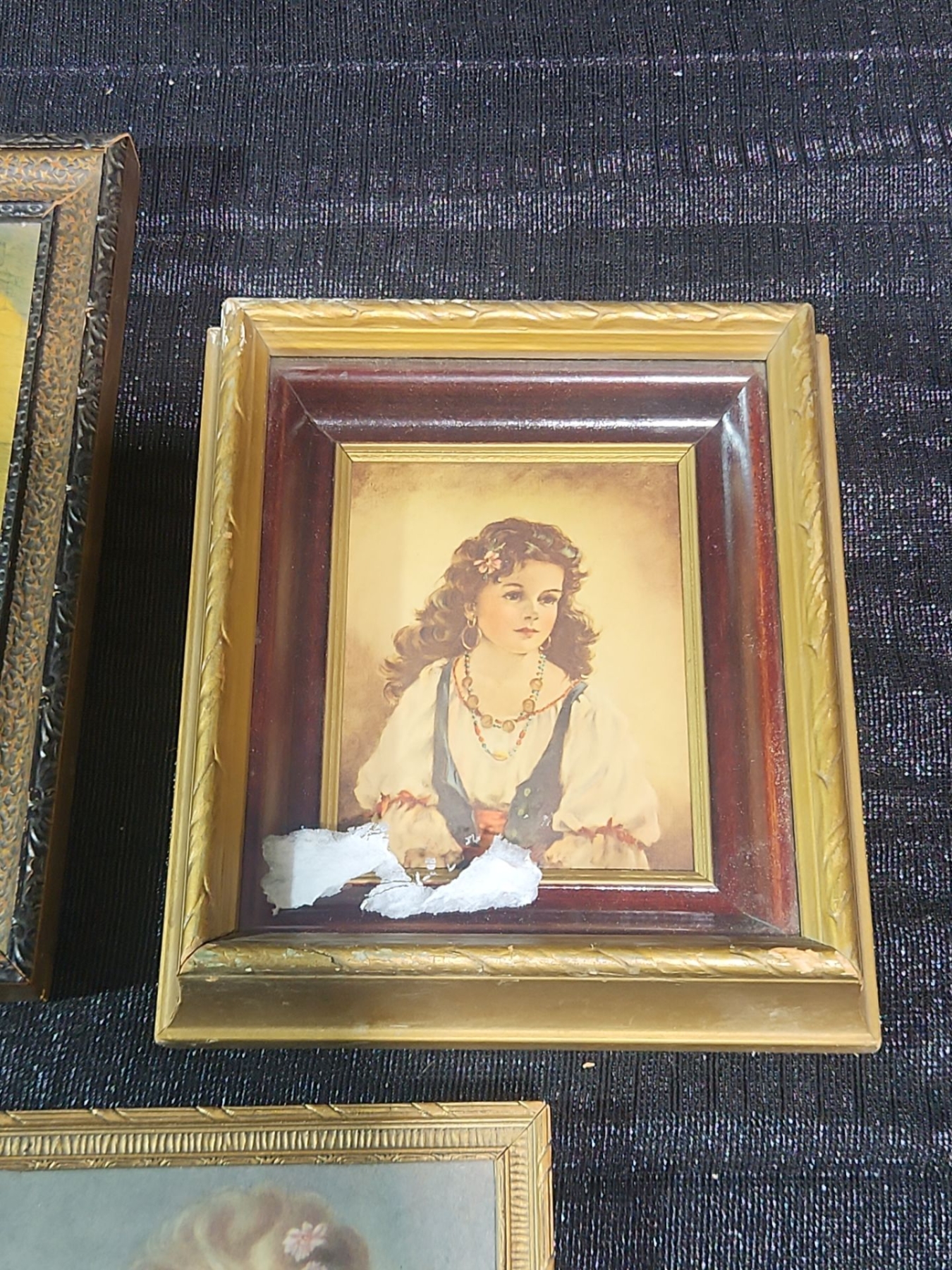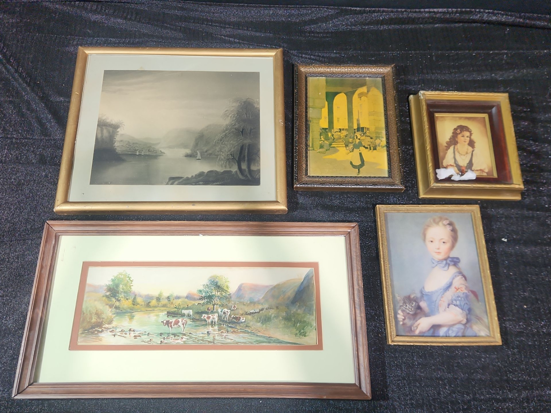 Here we have 5 pieces of framed artwork, with a bit of a Victorian feel, that would look amazing added into a gallery wall. Pleasant images of landscapes, people and animals.