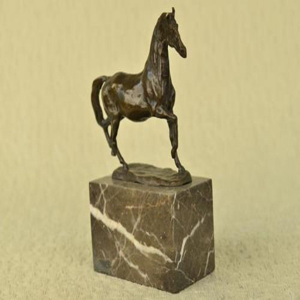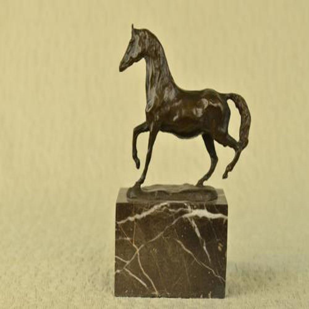 The horse trots along the the grassy land. The horse is happy and please to be free. Free to roam, free to be himself without restraints. The beautiful, magnificent animal is strong, pleasant but a powerful force when it wants to be. This sculpture was crafted using the lost wax method and rests on a marble base. Bronze Dimensions with Marble Base: Height 8 X Width 7 Inches. Weight: 6 LBS.