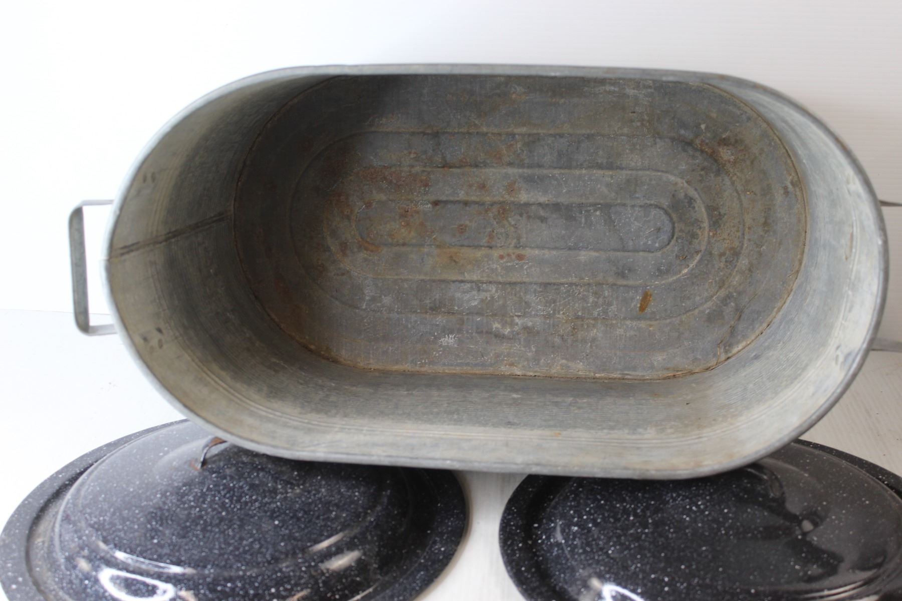 Galvanized Boiler (25" Long x 12" Wide x 12" Deep) (2) Black Canning Pot Lids