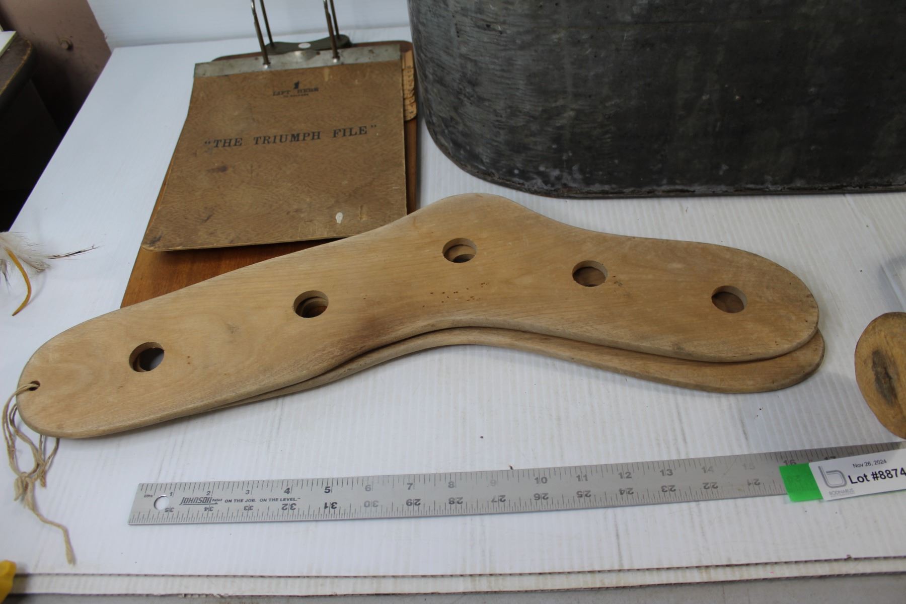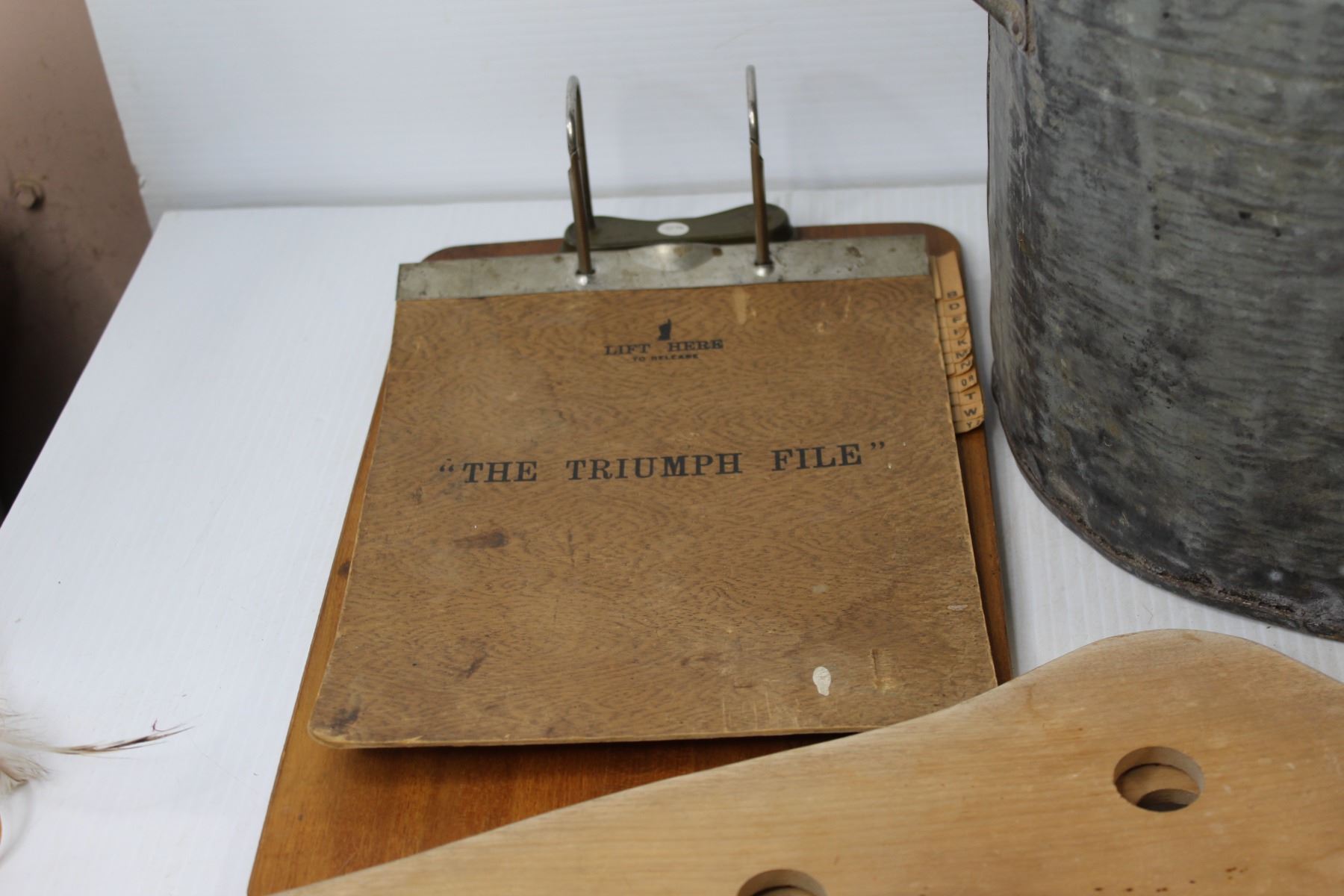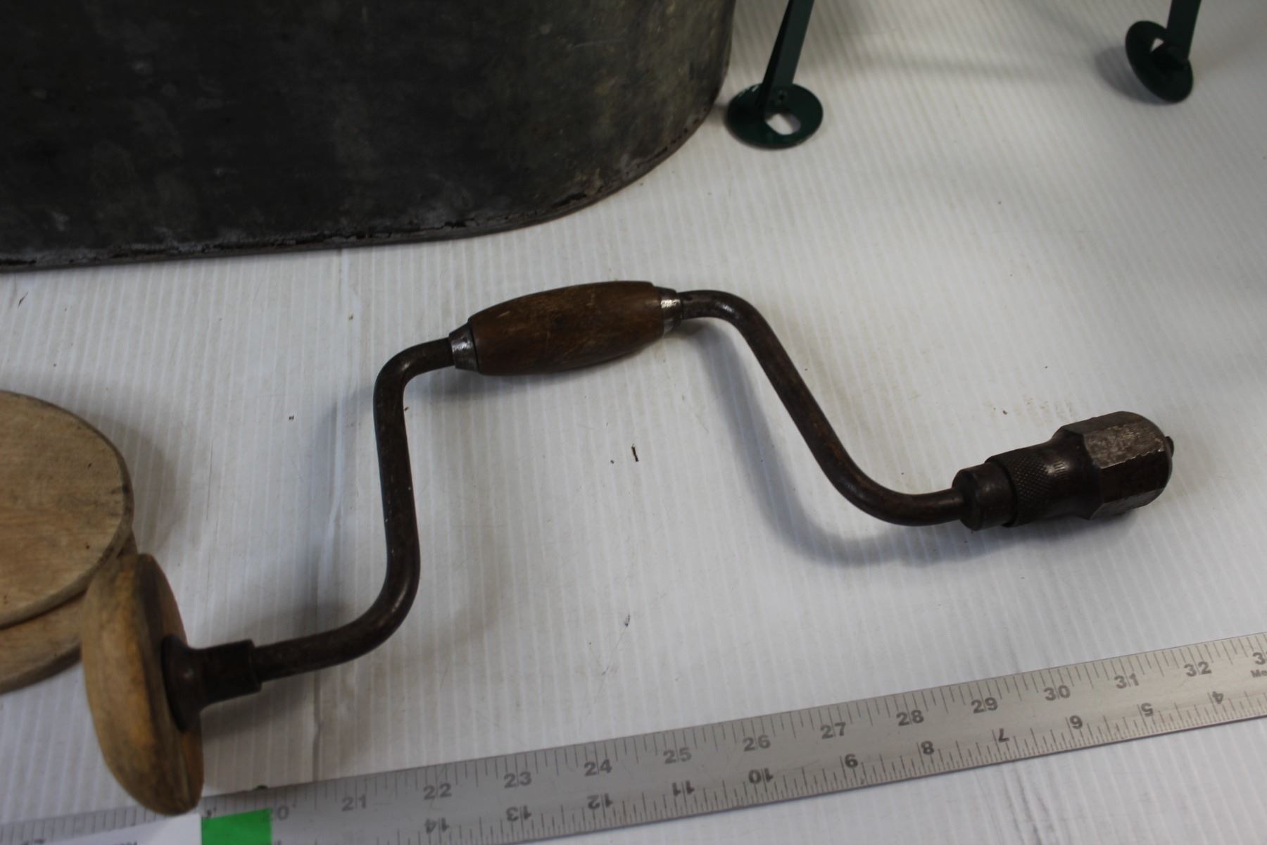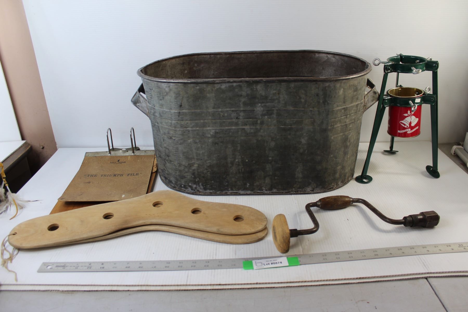 Galvanized Boiler, Carpenters Brace, Clipboard, Tree Stand
