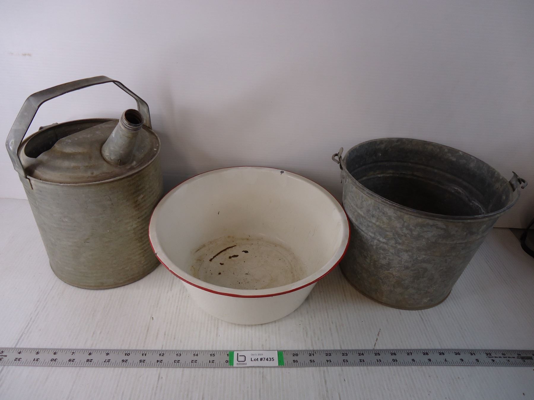 Galvanized Metal Watering Can and Pail and Enamelware Metal Pot w/red trim