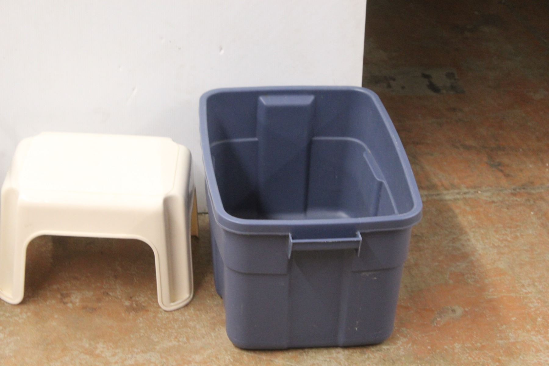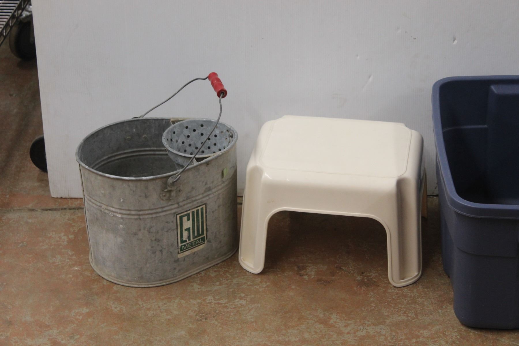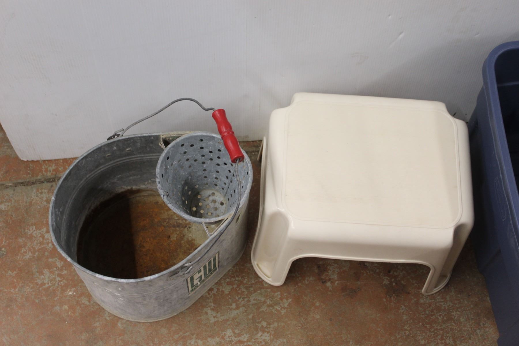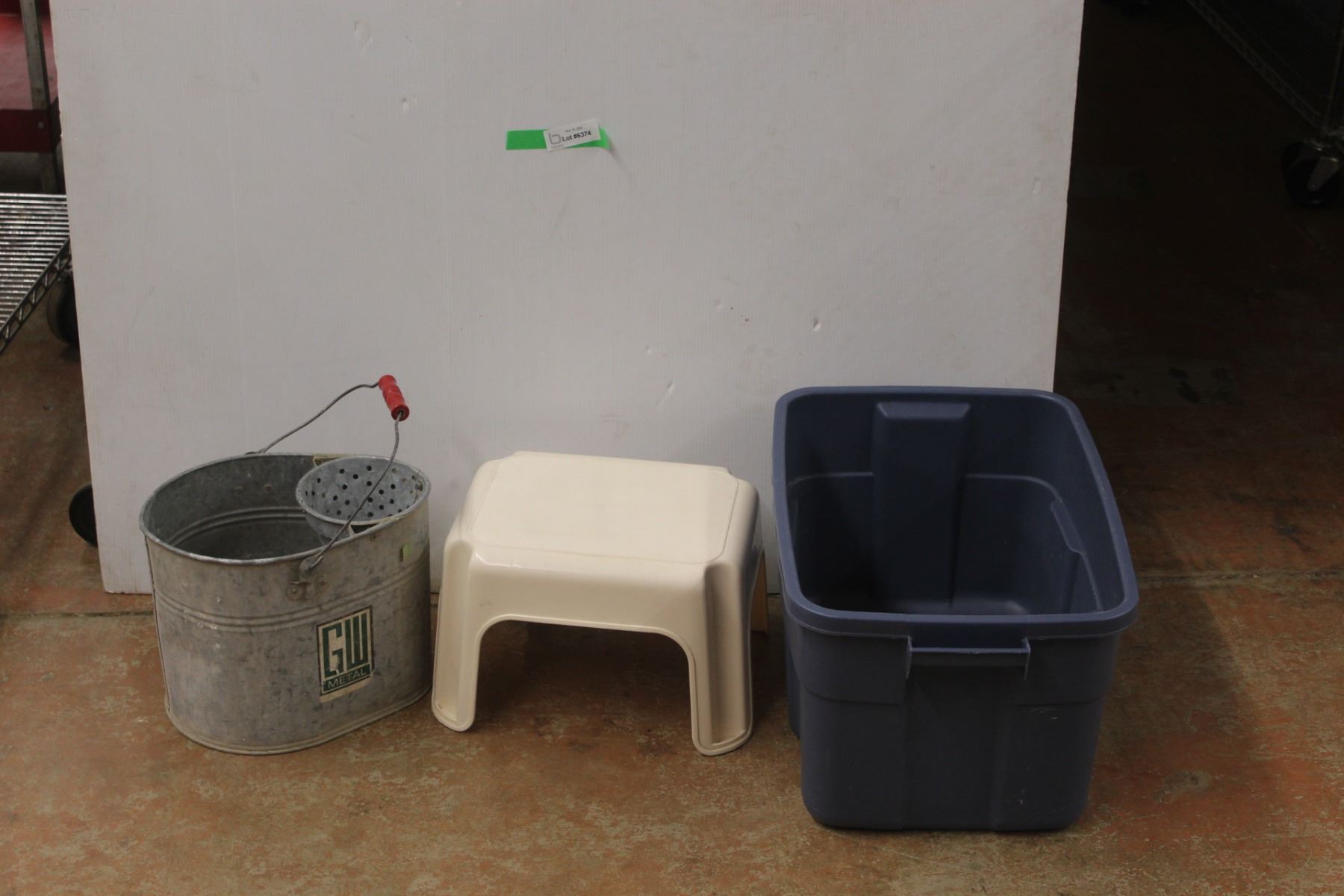 *Galvanized Mop Bucket, Plastic Tote 21'' x 12'' and a Step Stool