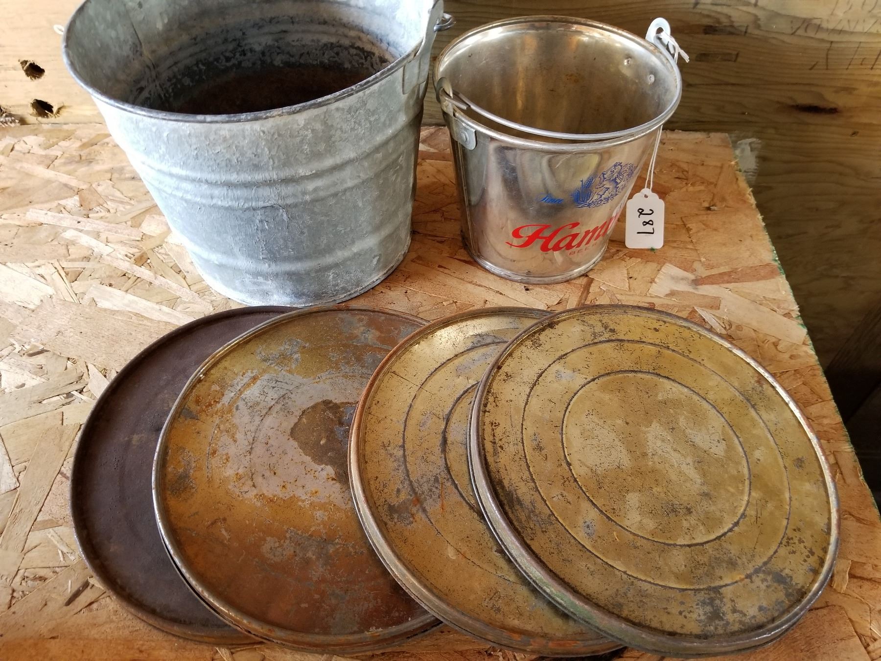 Galvanized Pail, Beer Pail, 4 coffee pail lids