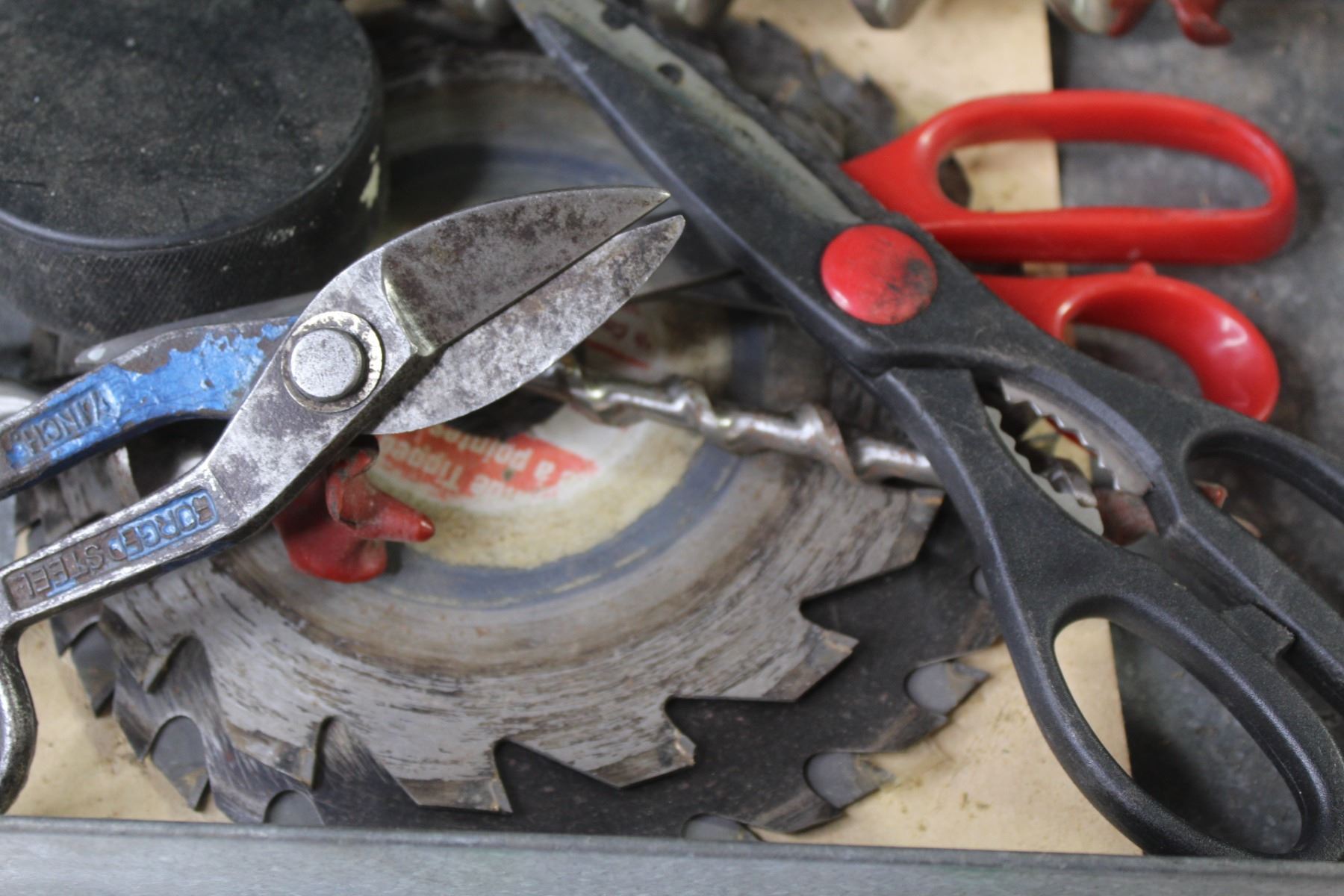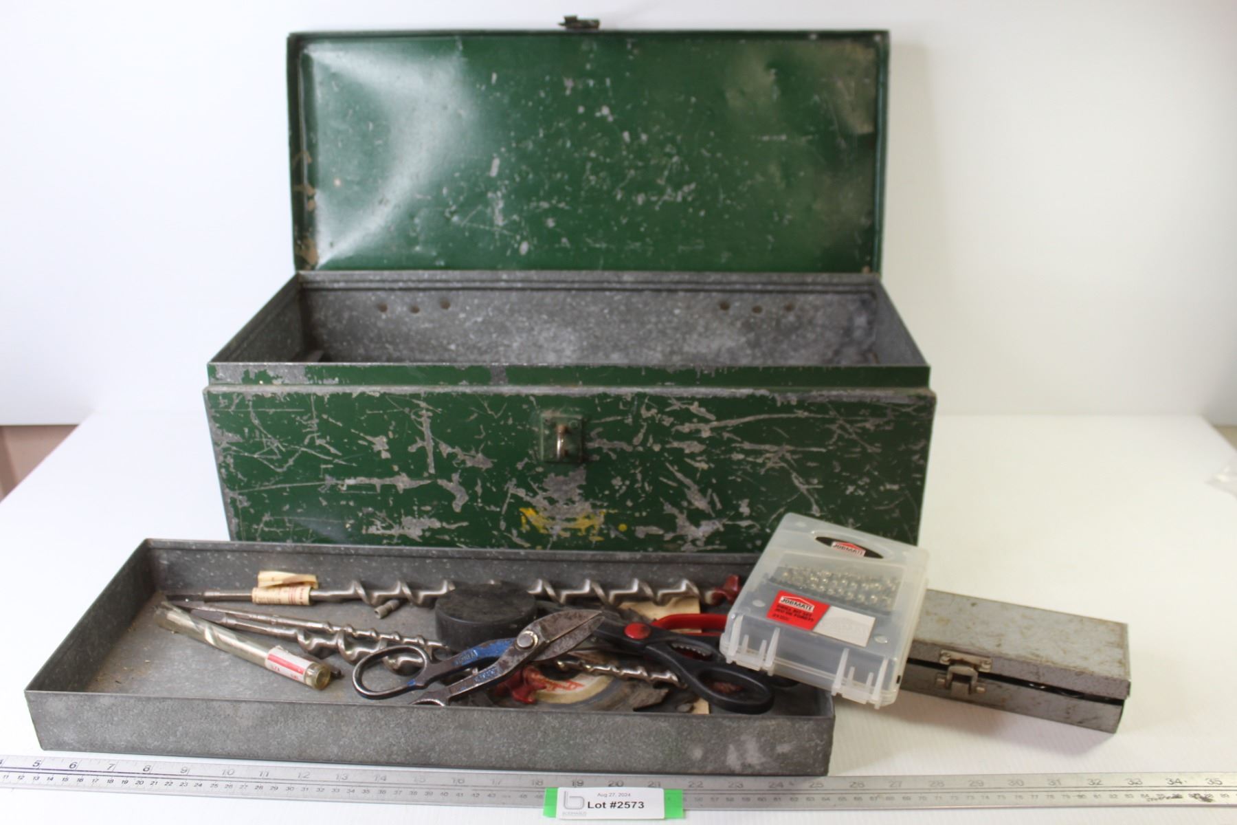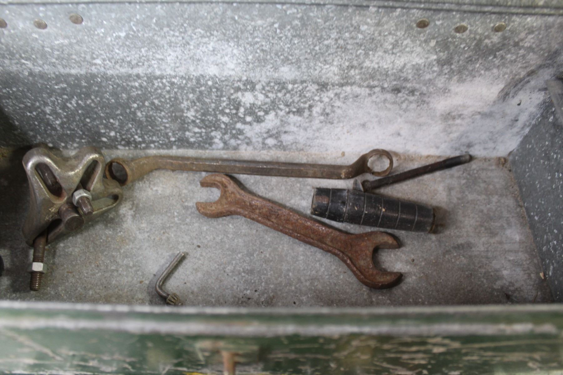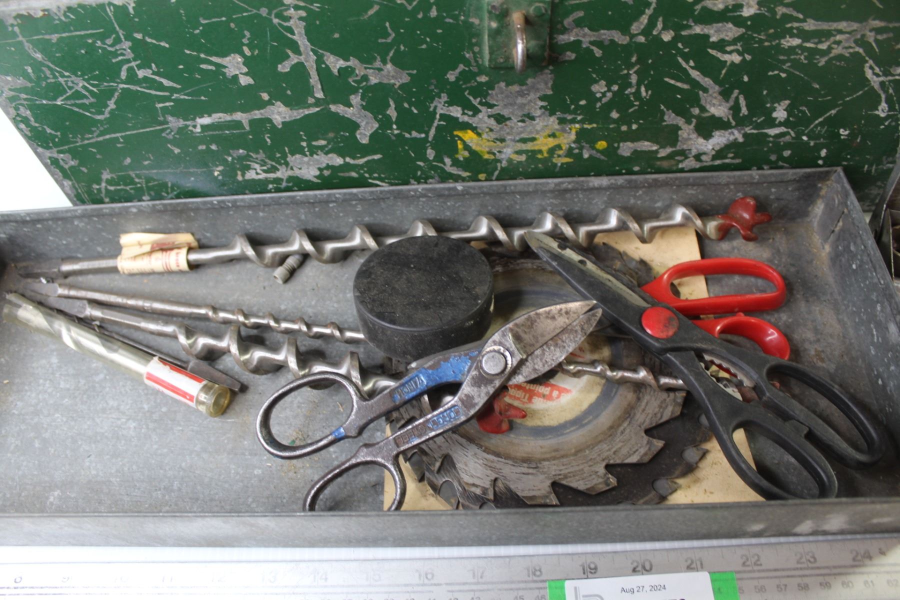 Galvanized Tool Box w/Tray - Saw Blades - Puller - Misc. Items