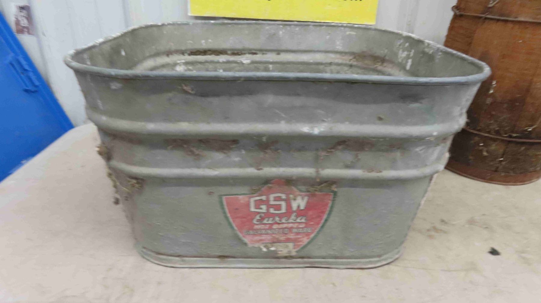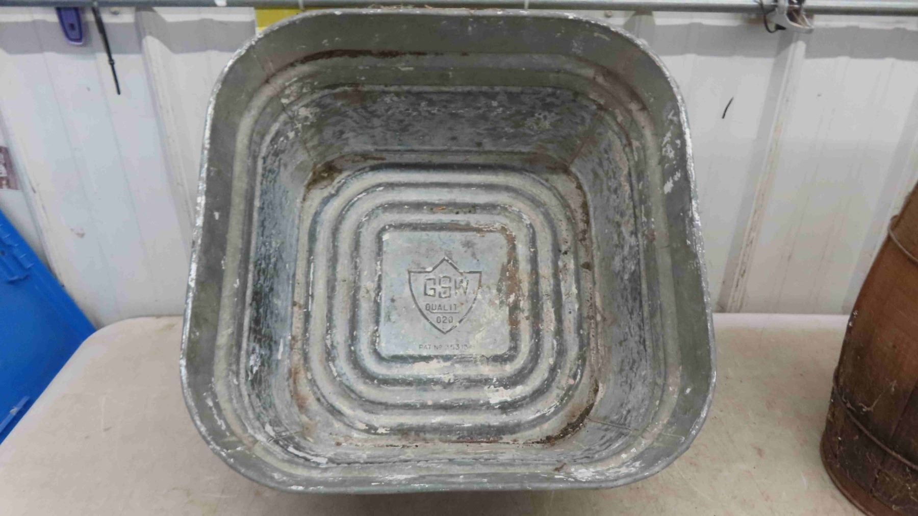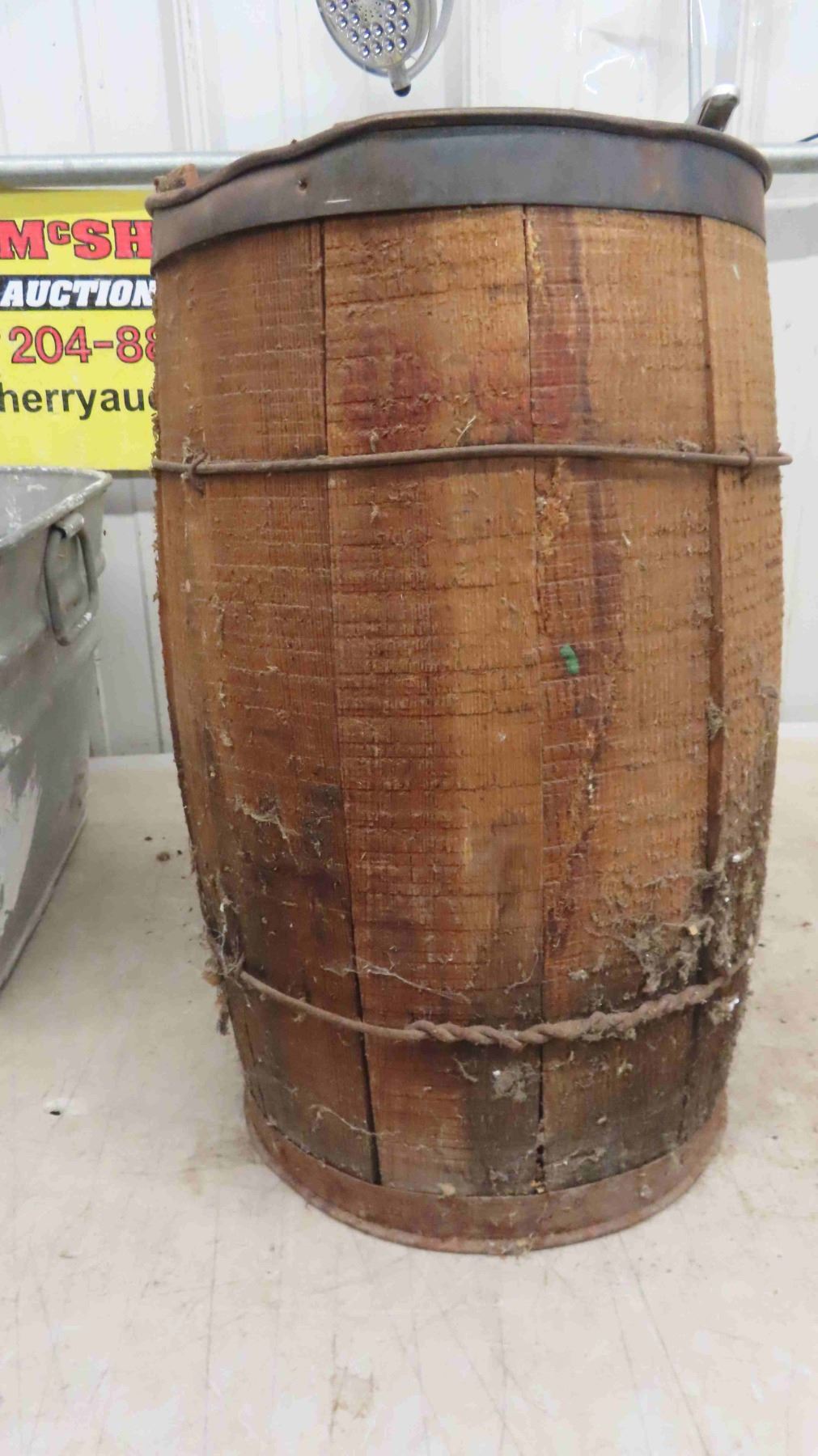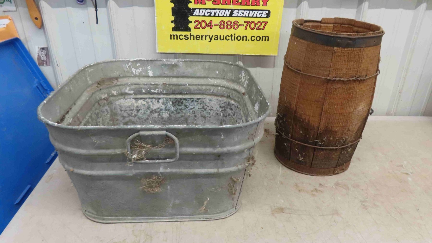 Galvanized Wash Tub, Wood Barrel 9 1/2'' x 17'' Tall