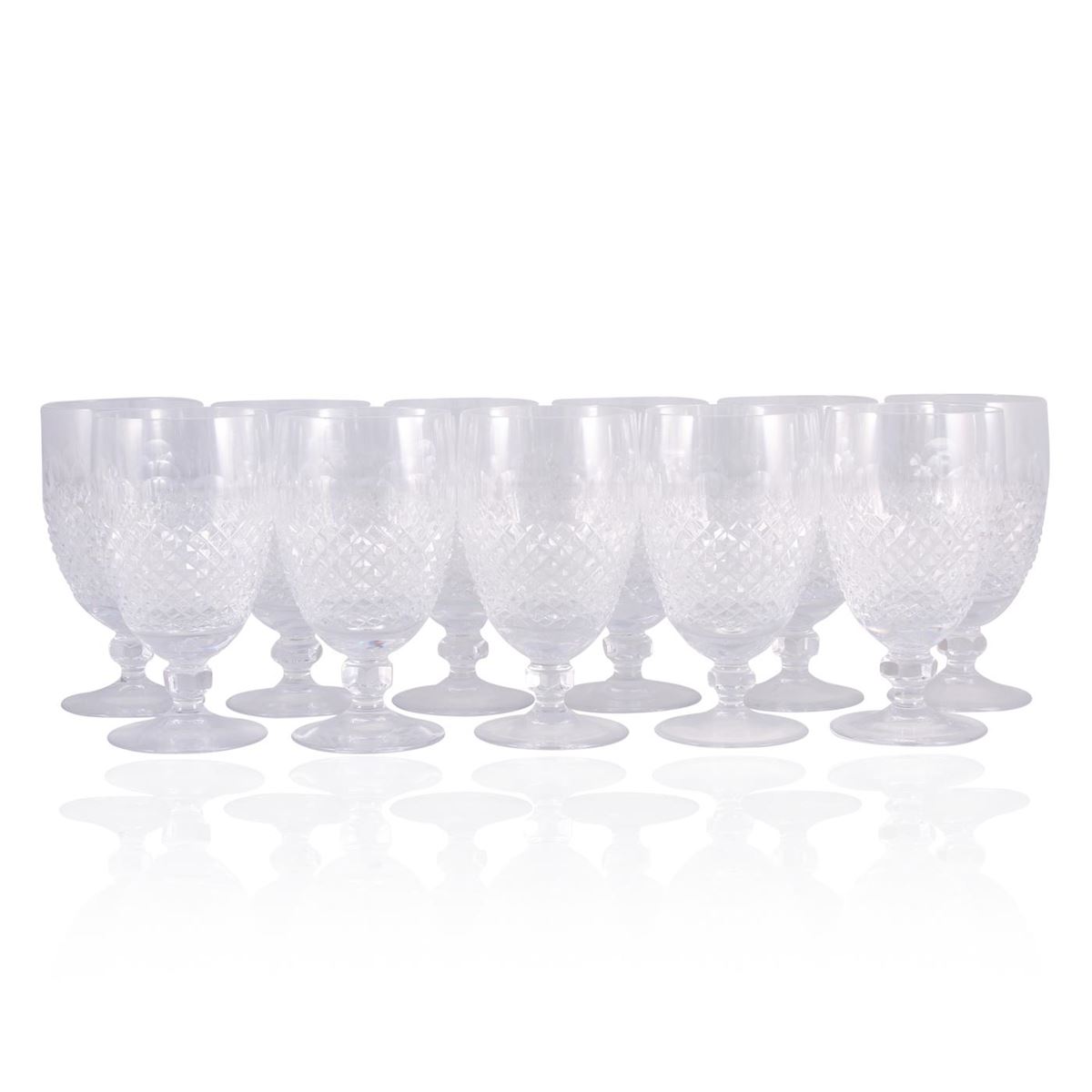 11 beautiful crystal water goblets with smooth foot. Each goblet is 5 3/4" h x 2 3/4" diameter. All are in great condition.