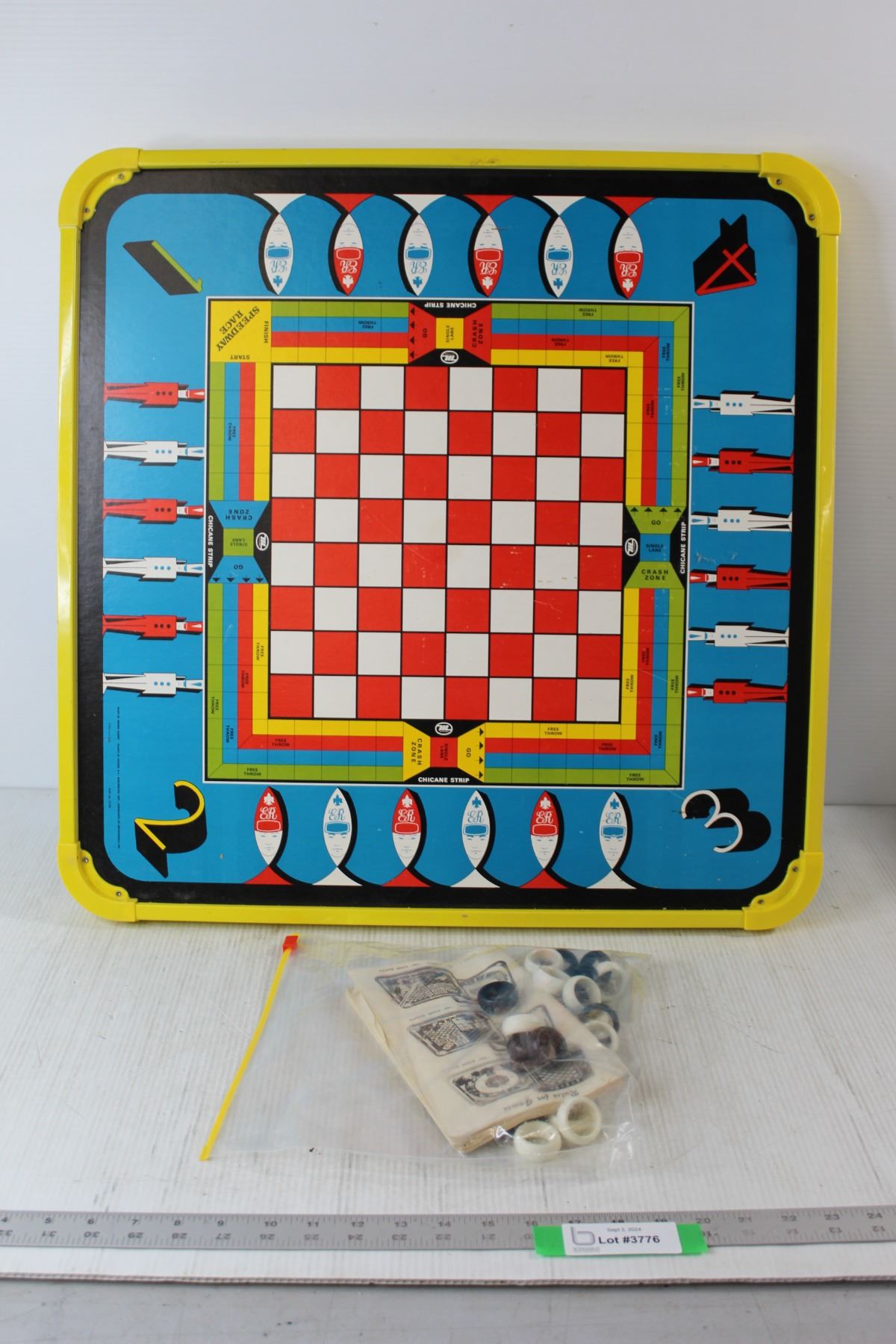 Game Board Including Caromm Backgammon Checkers Wam-Poo Steeplechase Speedway Race - 24" x 24"