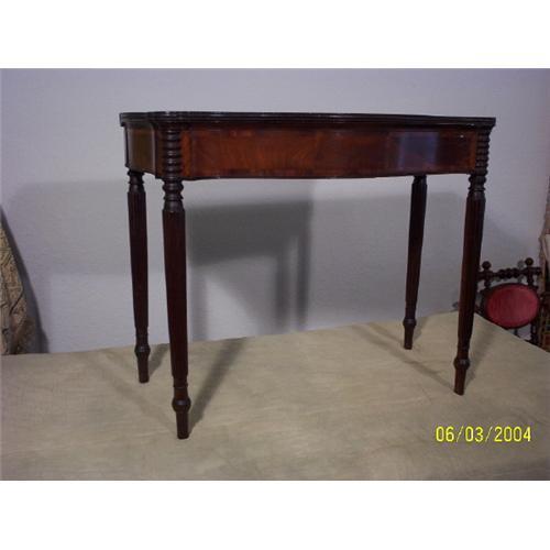 This is a period Sheraton Game Table from the north shore of Mass. or Salem Mass. It is in very good condition and still retains a very old finish. It has no breaks or repairs, and when open the top measures 36 inches by 36 inches. Please contact the seller inorder to get the cost of shipping and handling.