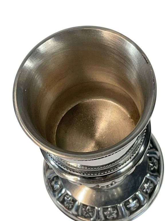 Original metal silver goblet used in the fantasy drama television series 'Game of Thrones' (2011-2019), where nine noble families fight for control over the mythical lands of Westeros, while an ancient enemy returns after being dormant for thousands of years.