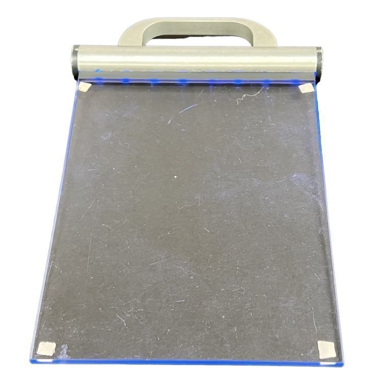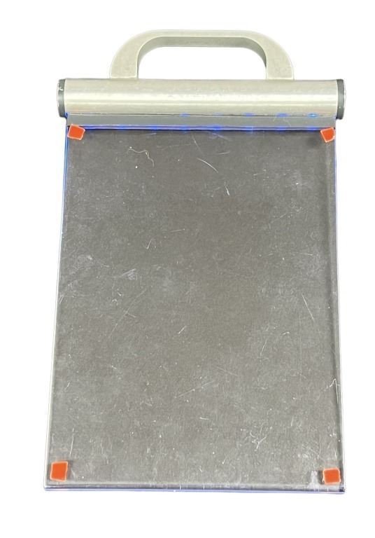 Hand made machined aluminum with a switch that controls the working LED lights. Has four special effects marker stickers on the corners.