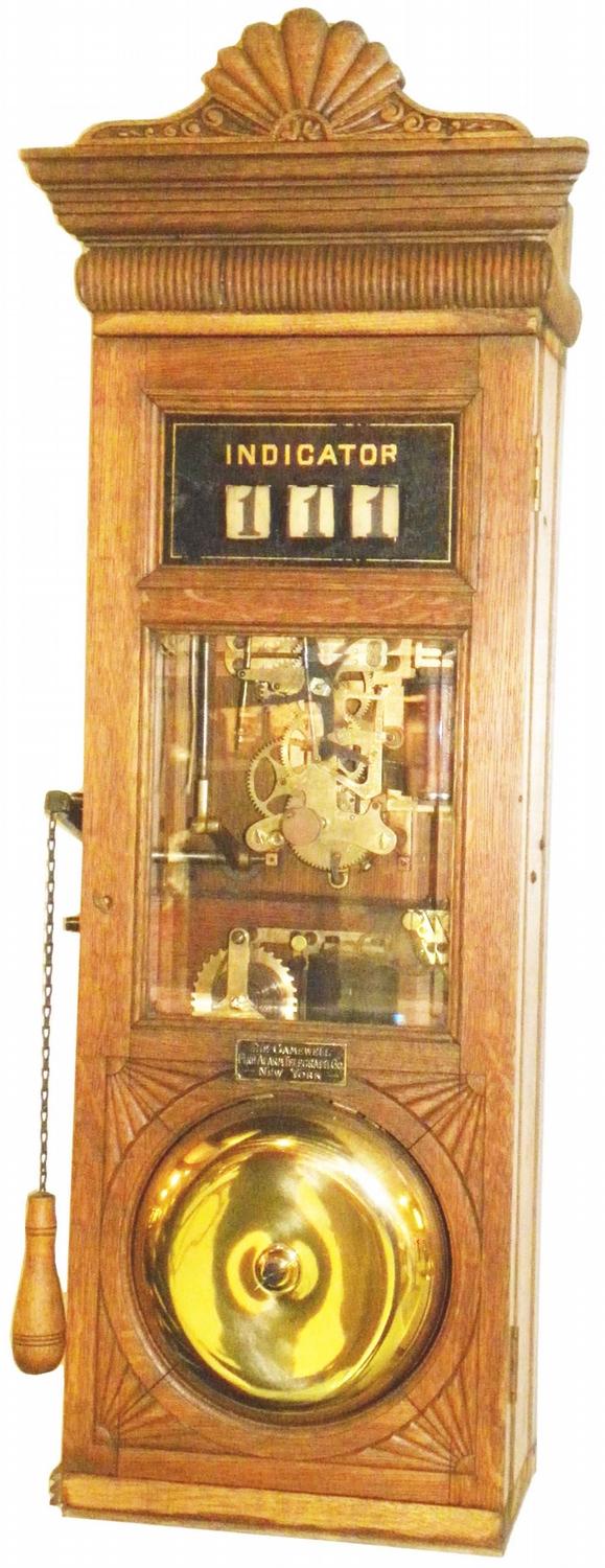Gamewell Fire Indicator. Gamewell Fire Alarm Telegraph Co. NY. Oak cabinet is missing bottom trim otherwise very good condition. 13 X 40 X 7 inches.