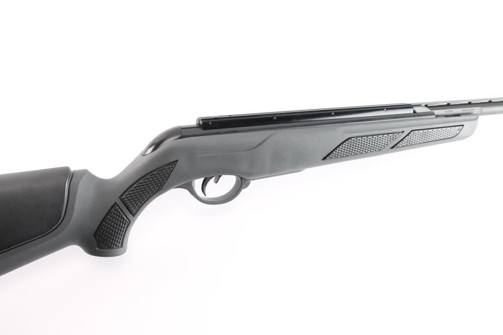 Lightweight .22 caliber break barrel air rifle/shotgun. 750 FPS. Nylon all-weather stock, non-Slip texture on grip and forearm, vent rib with brass sighting bead, 17.8" Fluted polymer jacketed rifled steel barrel, grooved cylinder for optics, manual safety forward of trigger. Excellent condition, like new.