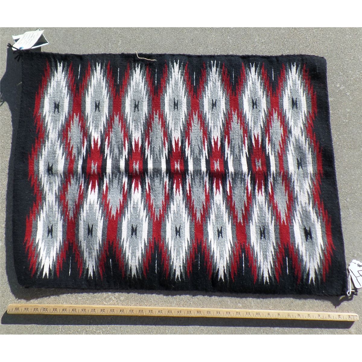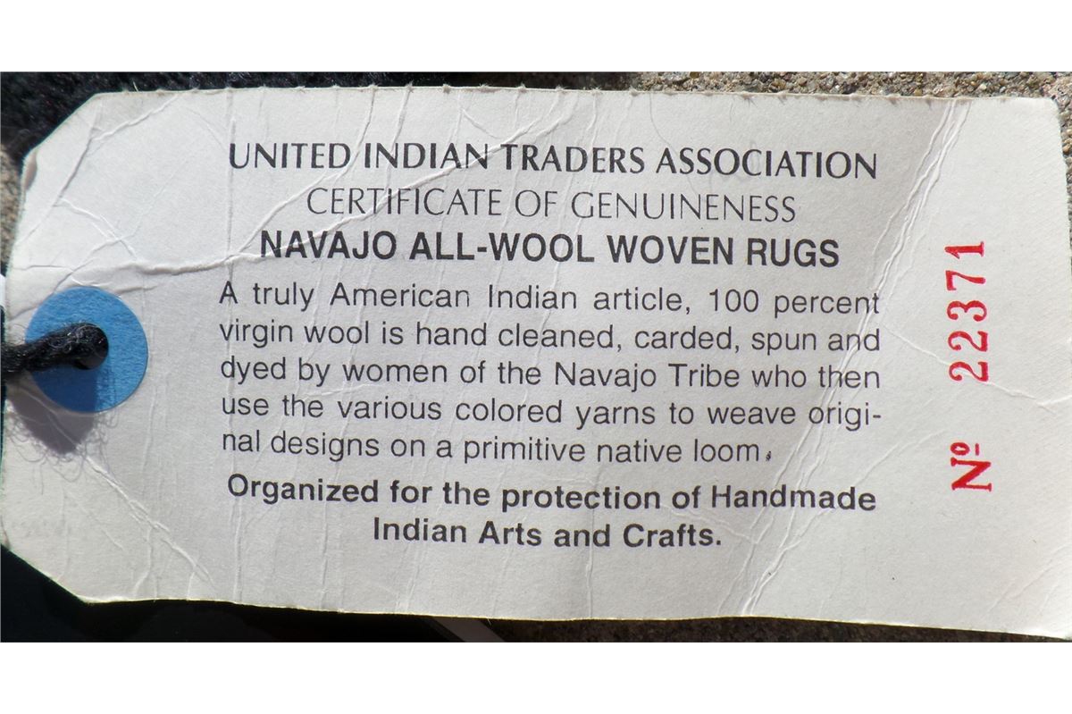 Navajo Weaving from the 1940's. This great wool weaving measures 27 x 46 inches and is from Arizona. The item is in good clean condition and of great investment quality. This rug has Indian ruins Indian Store tag from Sanders Arizona. It is 100% hand-woven by Sarah Bia. Shipping costs $30 .00