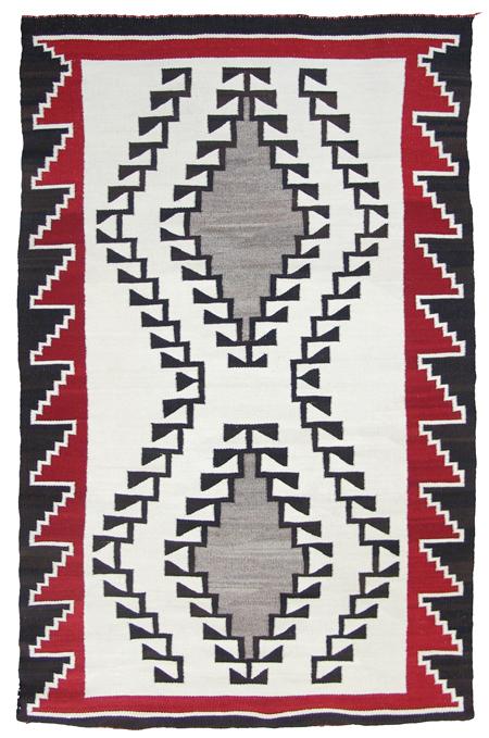 Ganado rug on white field of natural and analine dyes. Nice tight weave. 5'10" x 3'8"