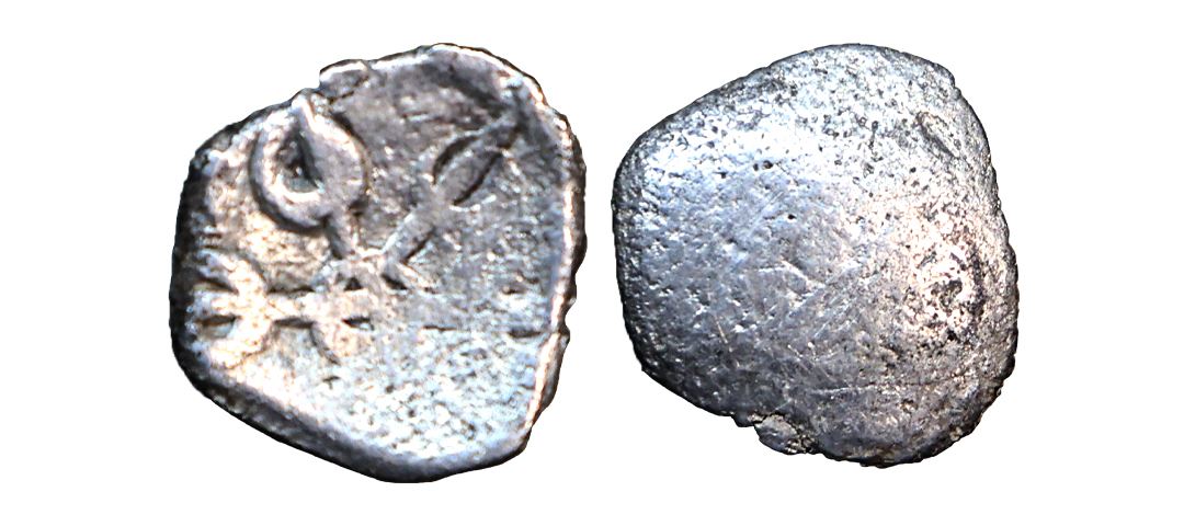 Gandhara Mahajanapada, (6th-5th Century BC), set of two coins, Silver 1/8 Shatamana, 1.23 gms, uniface, fine, very scarce.