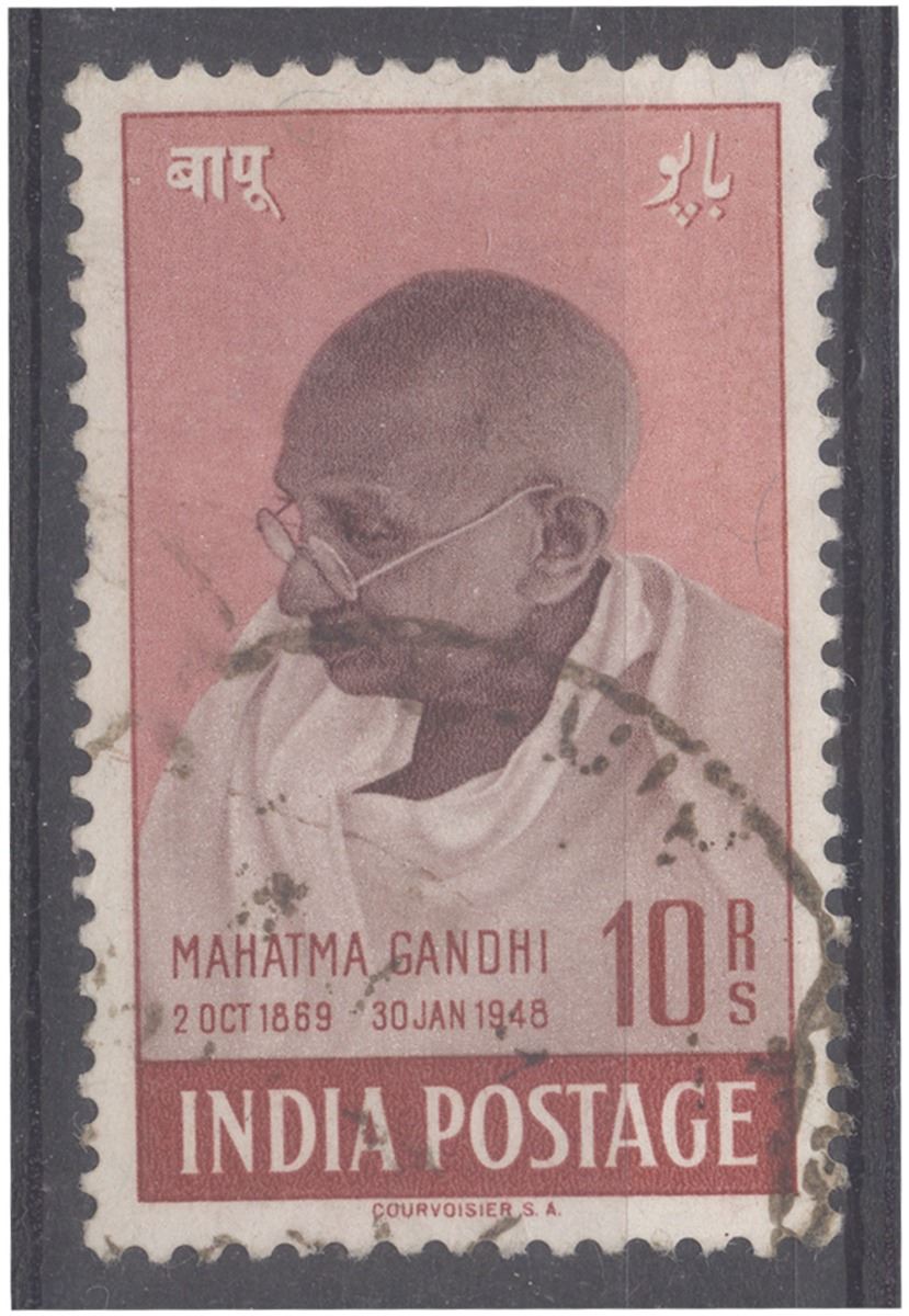 Gandhi, 1948, 10 Rs. Used in fresh condition, very lightly cancelled, fine to very fine. fine.