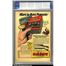 Gang Busters #9 (DC, 1949). Based on the smash radio hit! An outstanding copy of this pre-code crime comic, with top-notch artwork by Curt Swan, Dan Barry, Win Mortimer, and Howard Sherman. This superb copy has the staples rolled approximately 1/2" onto the front cover, and a distributor mark in pencil, but is otherwise like new, with a color-tinted photo cover. Sharp corners, and virtually no wear make this a highly desirable book. CGC NM 9.4 Off-white to white pages. Overstreet 2001 NM 9.4 value = $190.  Important notice: We expect to be auctioning lots at the rate of 200-250 per hour. Sometimes eBay Premier live bid software cannot keep up with that pace, so we strongly recommend that you place a realistic proxy bid now as insurance to avoid disappointment. Also please note that all Heritage/CAA lots purchased through eBay Premier carry a 20% Buyer's Premium.