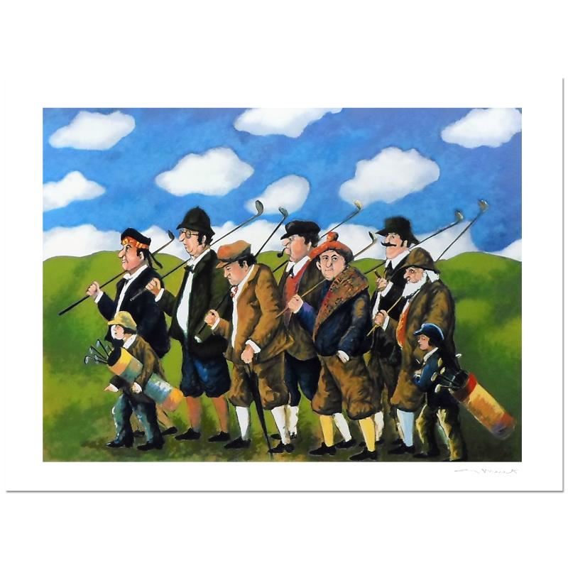 "Gang On The Move" is a limited edition serigraph on paper by Guy Buffet. It is numbered, hand-signed by the artist, and comes with a Certificate of Authenticity. Measures approx. 37.5" x 28" (image).
