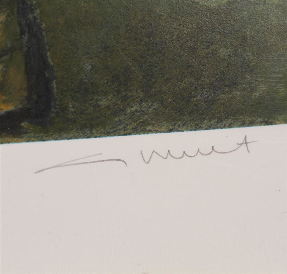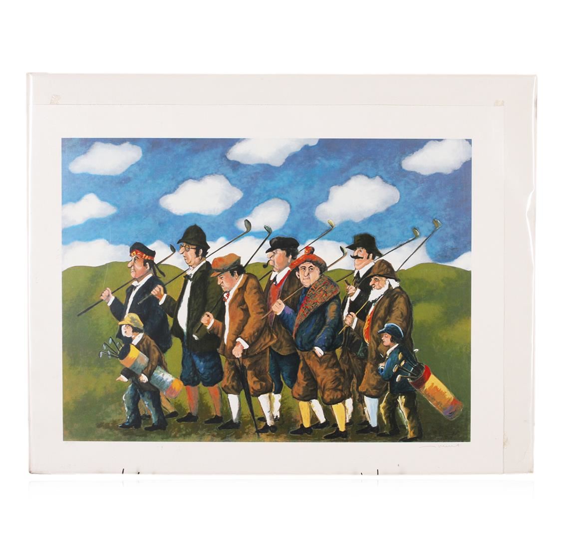Best known for his whimsical images of French Chefs and tuxedoed Waiters, world renown Guy Buffet takes us back to the origins of Golf on the Continent with this charming image of men on the links. Expertly produced by his longtime publishers Marco Fine Arts, this Artist Proof Gang on the Move is a signed & numbered serigraph on paper # 74 AP.