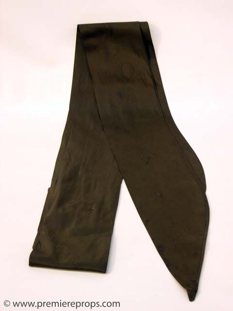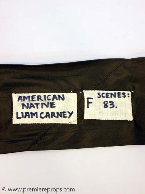GANGS OF NEW YORK - “Native Americans” Brown Silk Cravat - This brown silk and ribbon cravat measures 80 1/4” x 3 1/2” and has pointed ends. The gang affiliation, actor's name, “Liam Carney,” and scene numbers are written on a tag sewn to the vintage necktie. A unique and valuable piece of MIRAMAX movie history!!