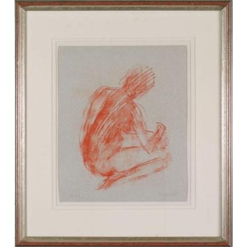 Garache Seated Woman I. Gold Toned Frame, Original color lithograph, 1989. 50 signed and numbered impressions. We have impression #16. Paper Size 18.5 x 16.5.