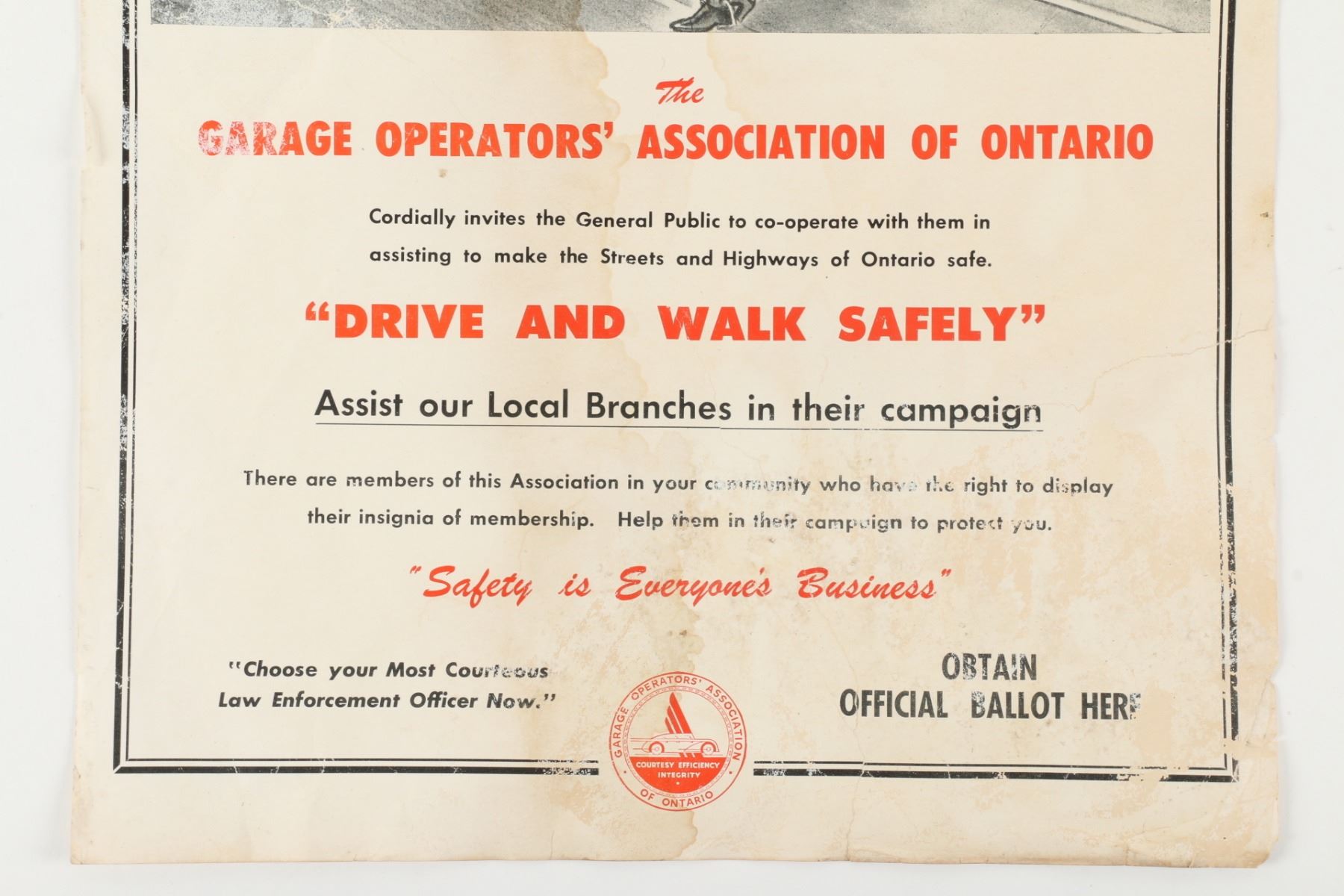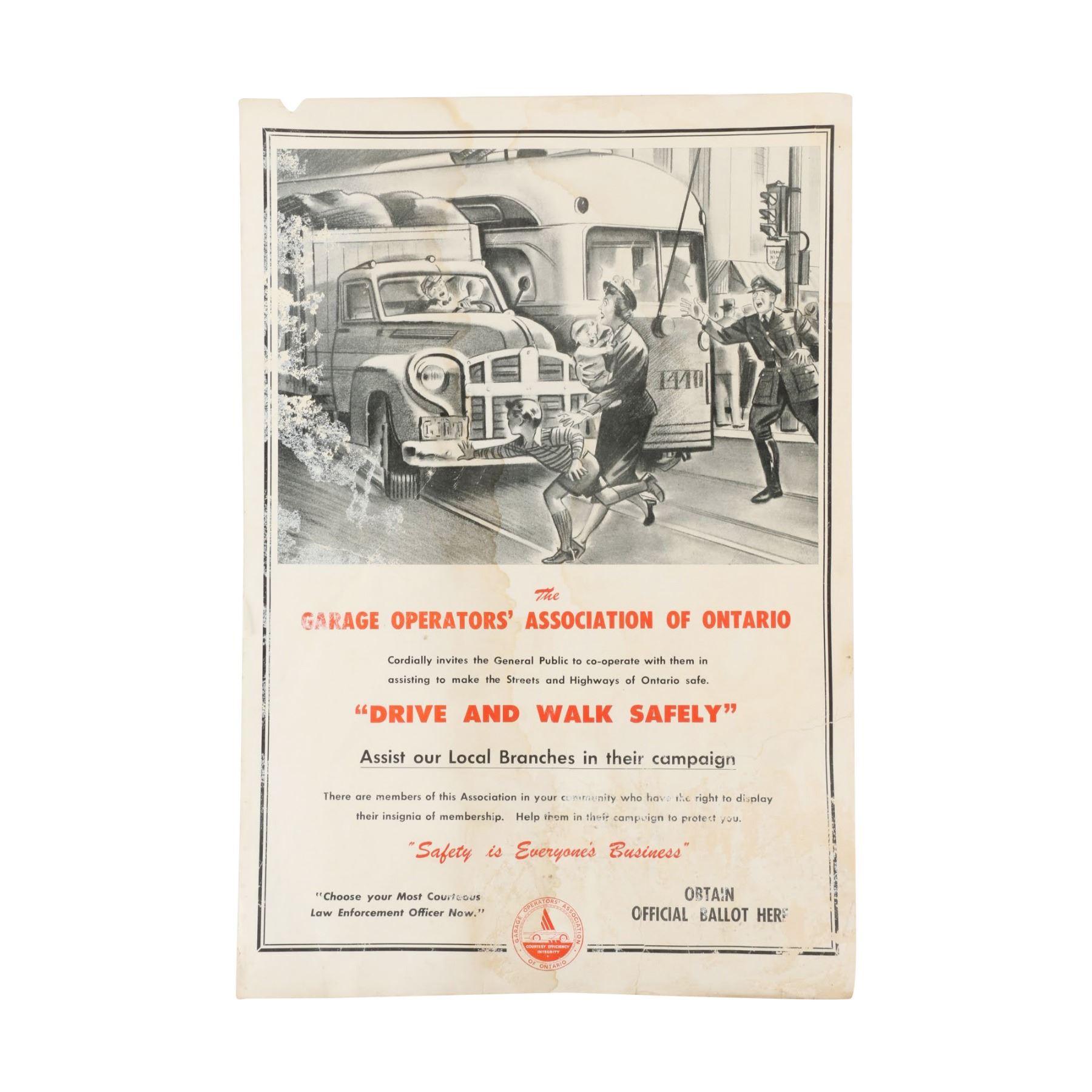 Canadian. Circa 1940. Garage Operators Association of Ontario. 19" x 13". Soiling, edge wear. Closed tears reinforced with tape from behind. $100-200.