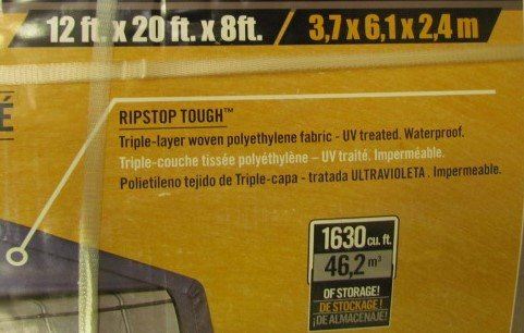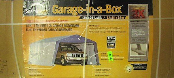 Garage-in-a-box Shelter Logic 12ftx20ftx8ft 1630cu ft of storage shelter auger set up tools included